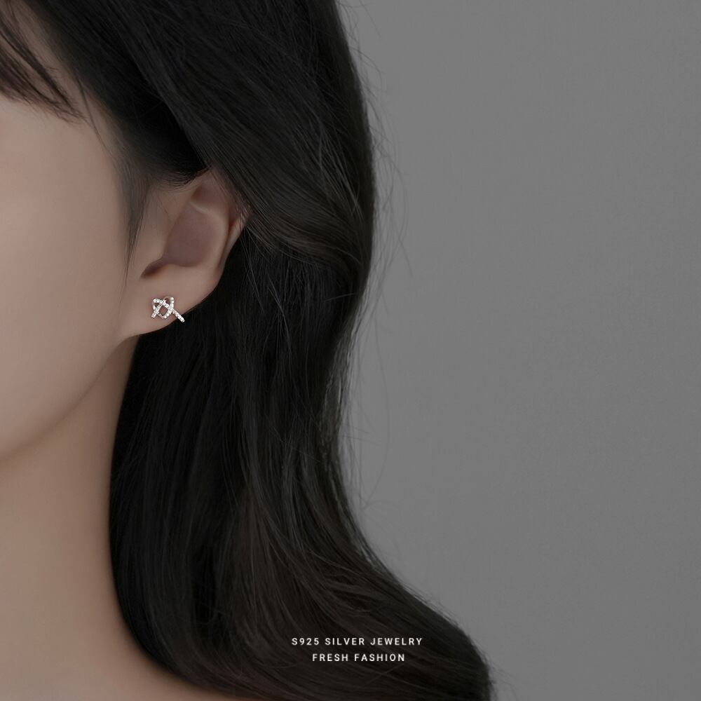 リボン ジルコン ピアス 18K シルバー925 レディース ジュエリー E2770