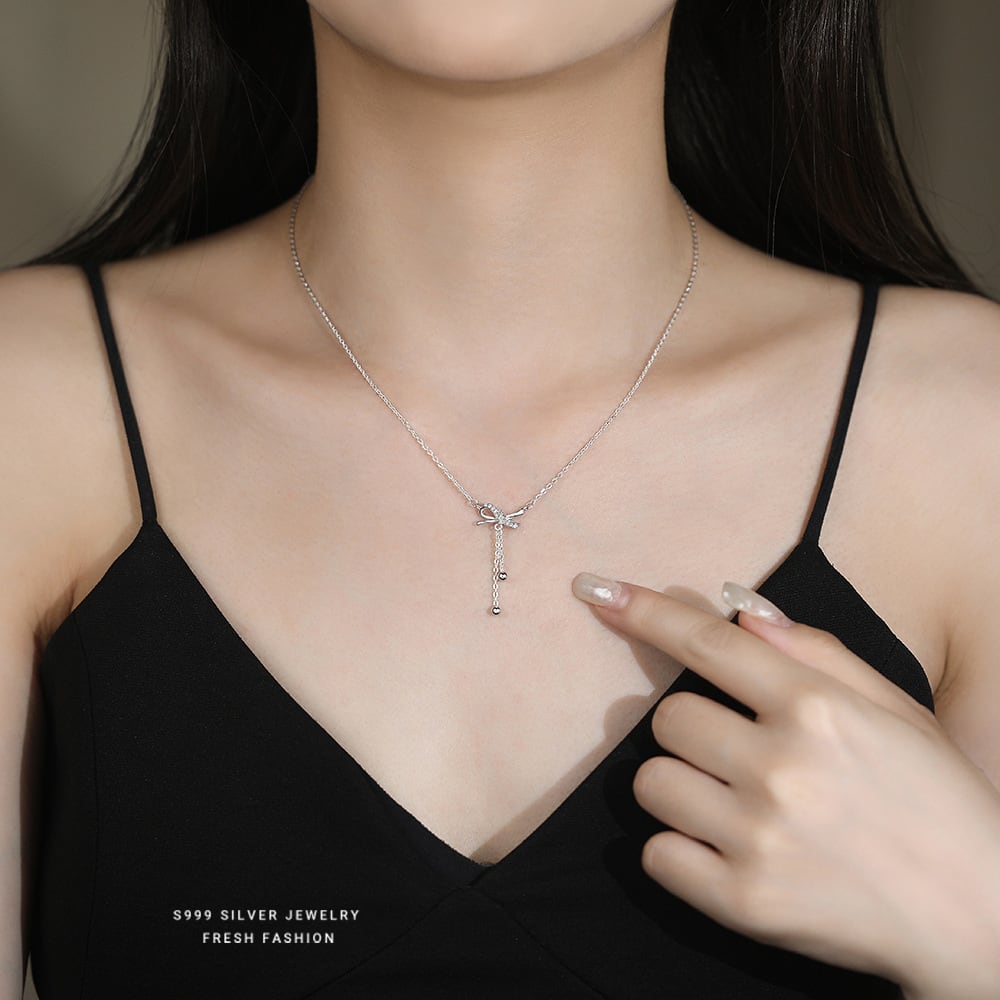 リボンとタッセルが揺れる、華やかで可憐なペンダントネックレス。