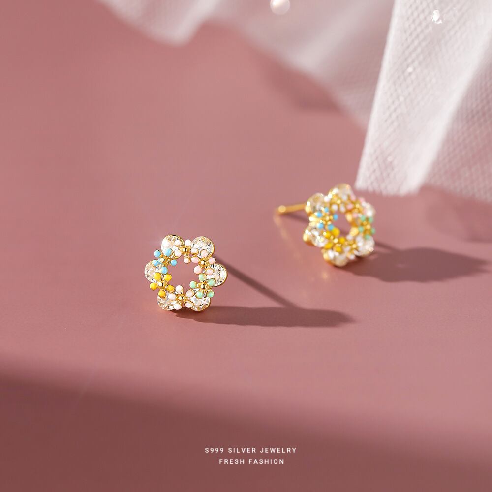 可愛いcolorful小花のモチーフが耳元に優しい印象を与えるピアス。