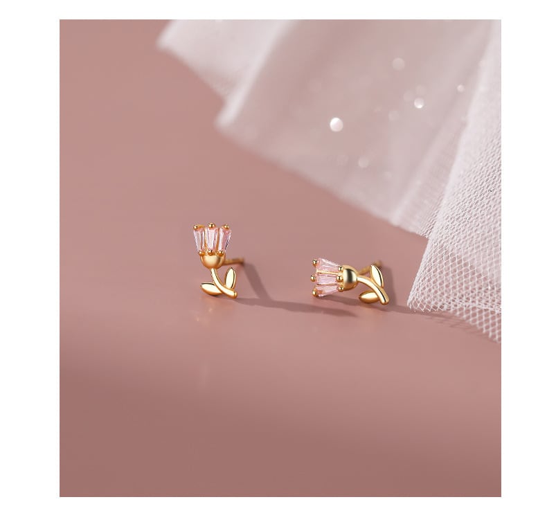 ジルコンを添えたエレガントなチューリップ ピアス