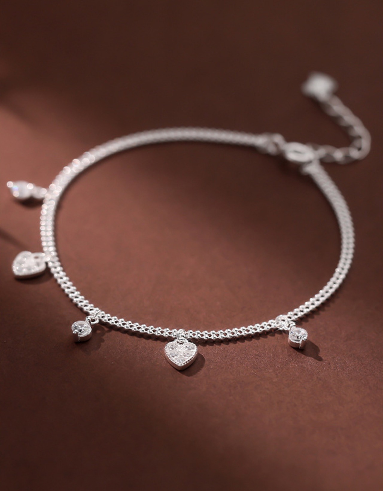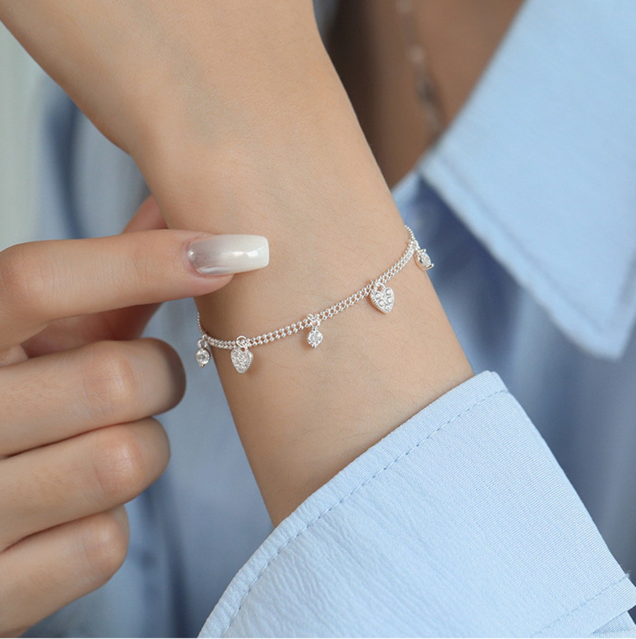 ハート×ジルコニア入り 可愛いブレスレット レディース