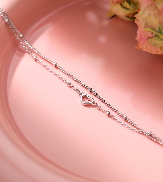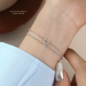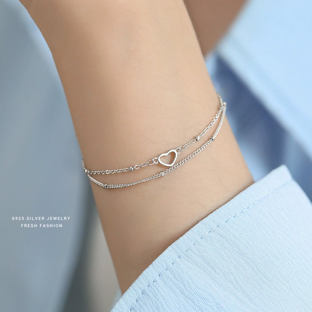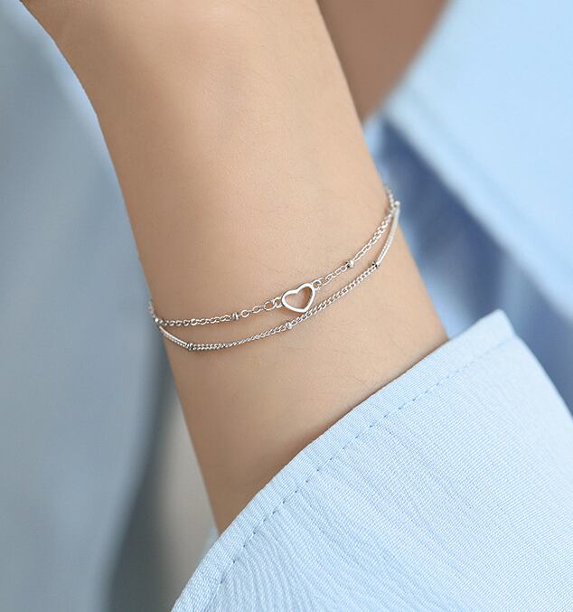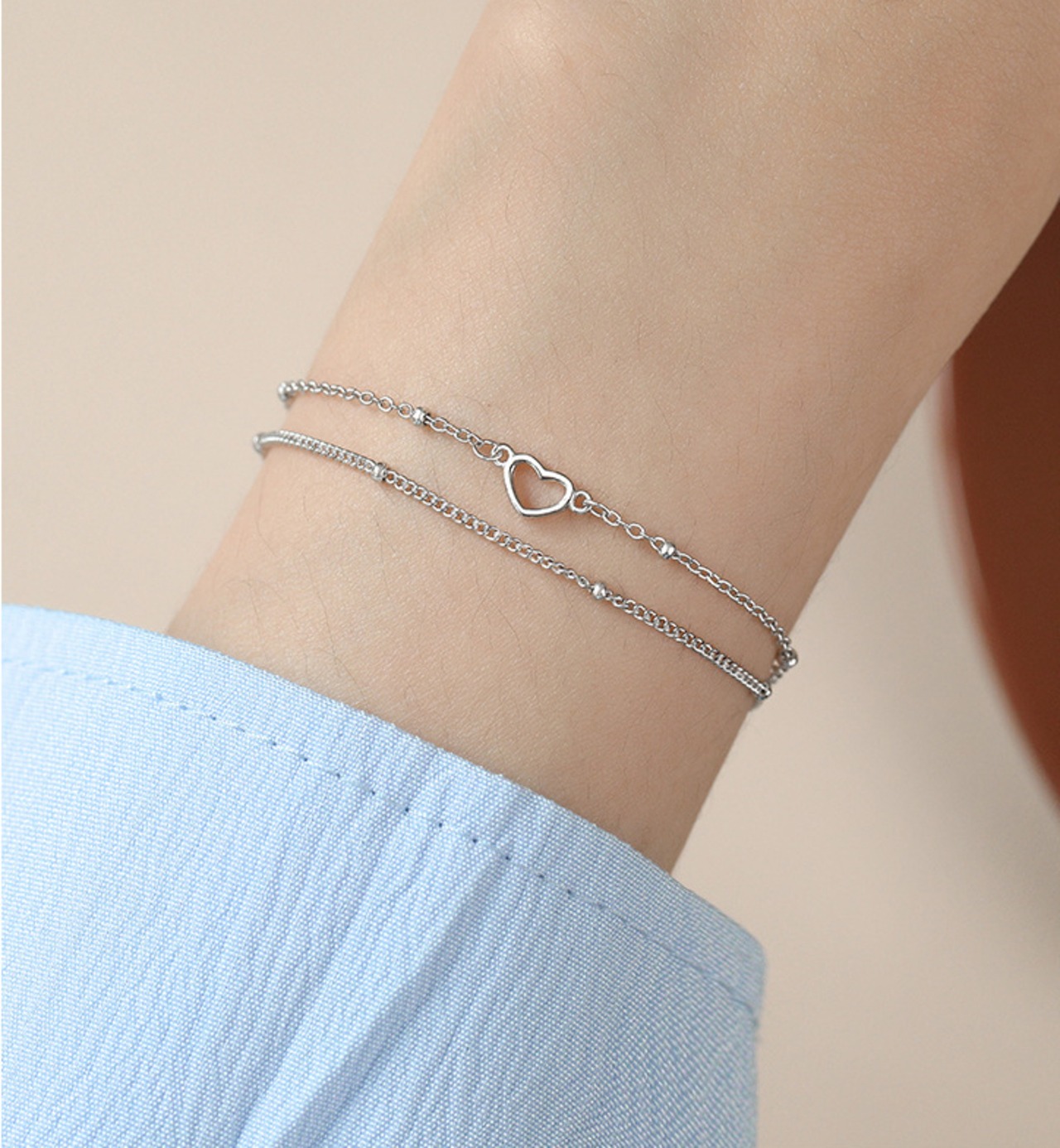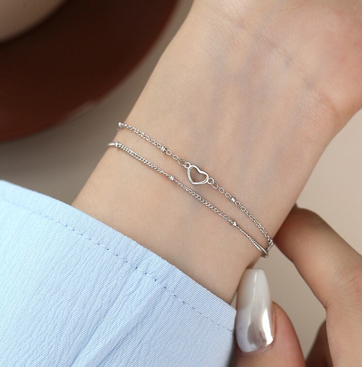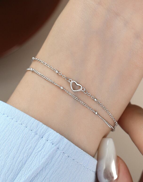 透かしハートデザイン、おしゃれな二重 ブレスレット レディース