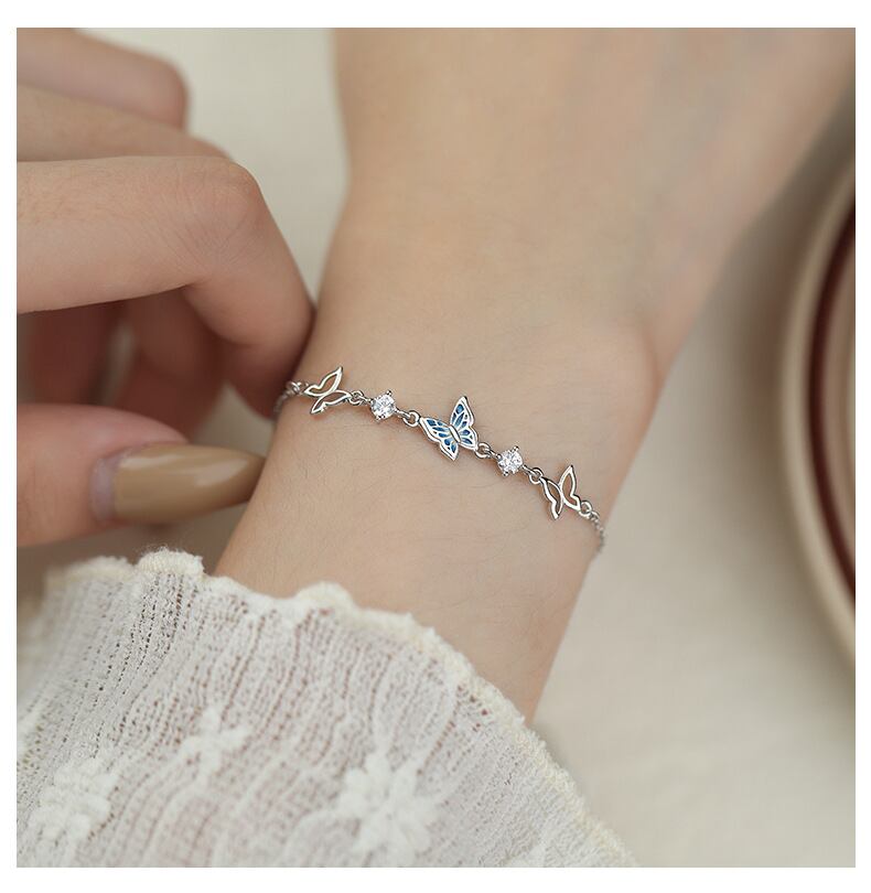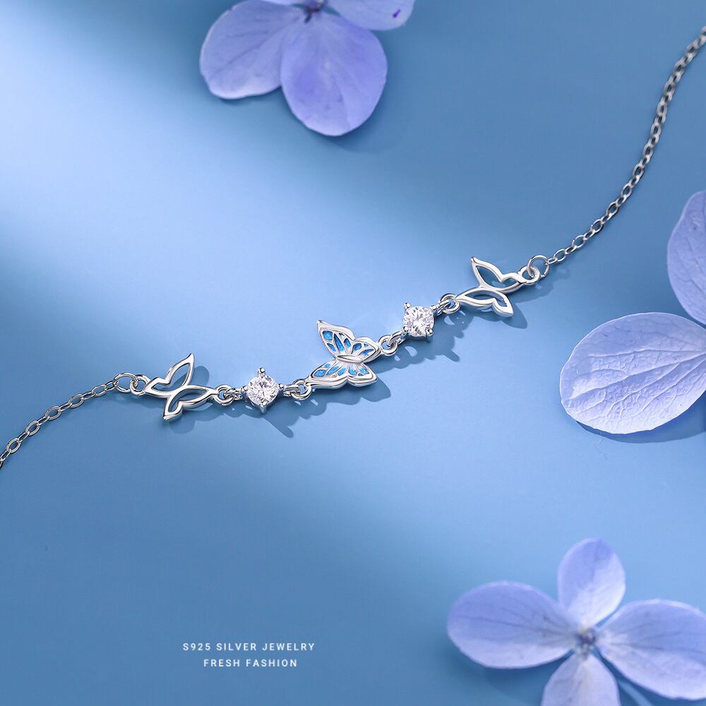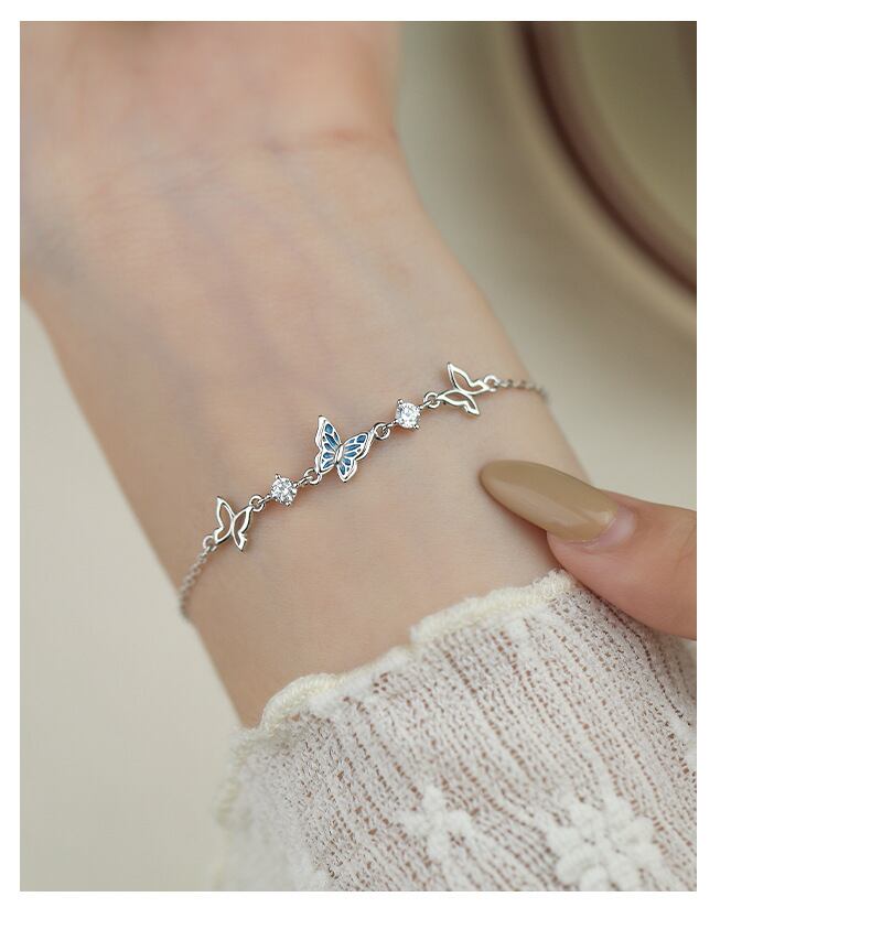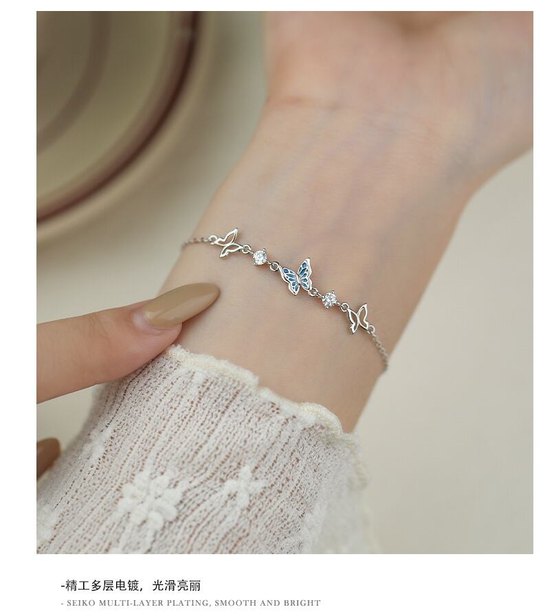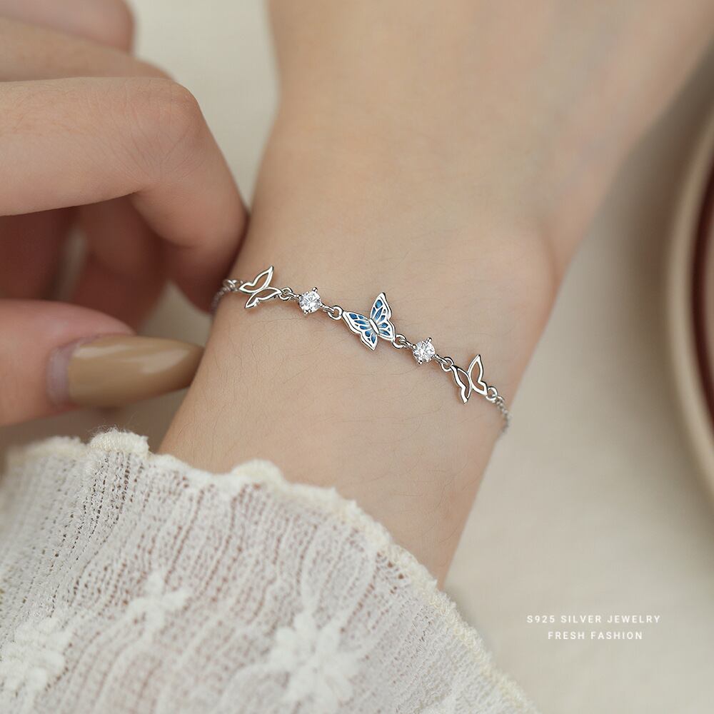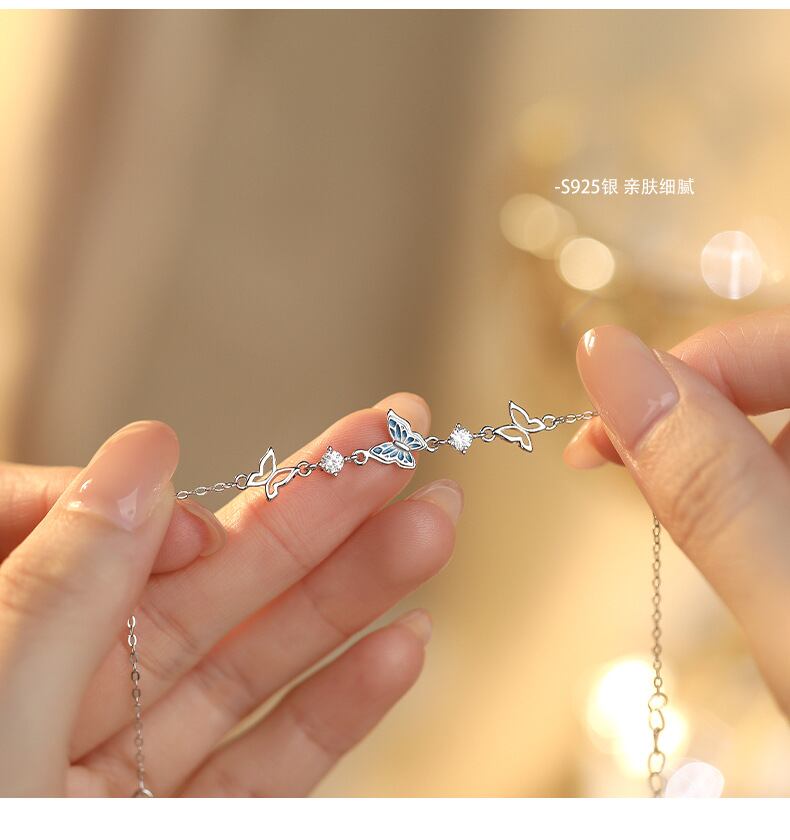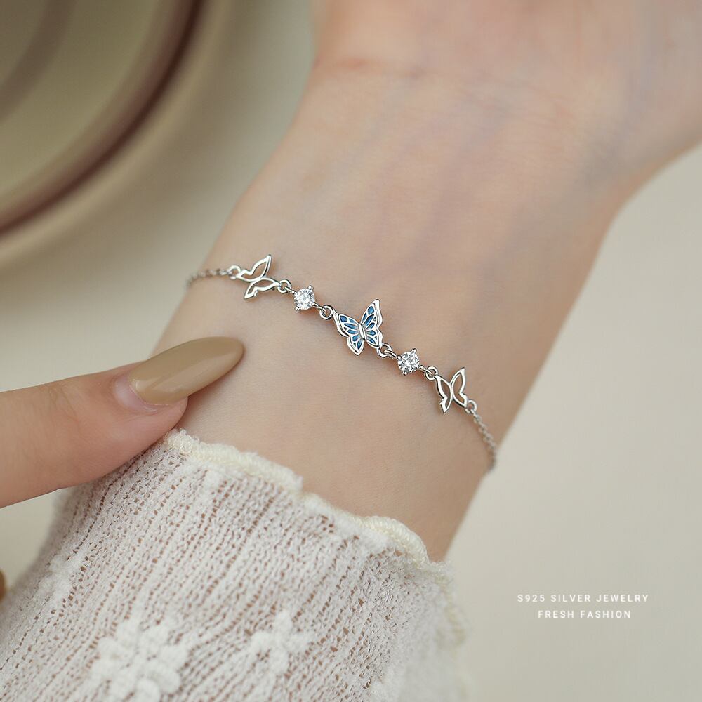 S925 sterling silver small fresh sky blue Epoxy butterfly bracelet women's fashion niche exquisite high-end Mori jewelry | Daimaruya
