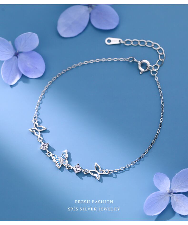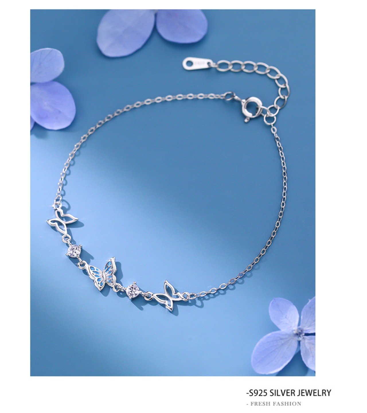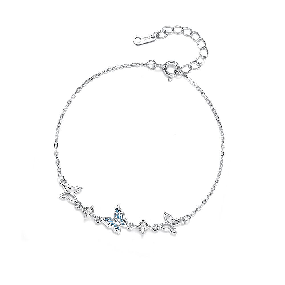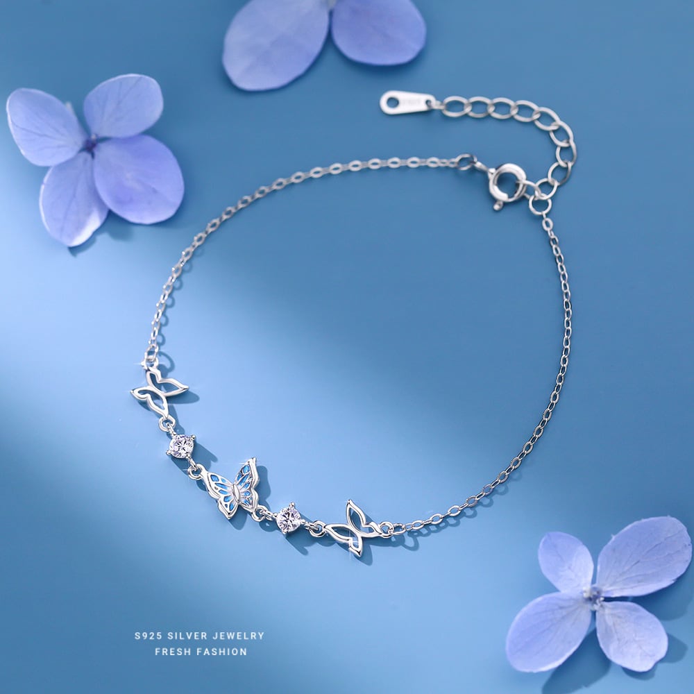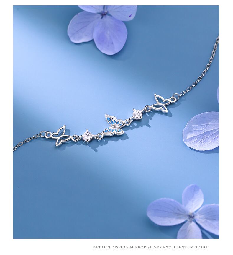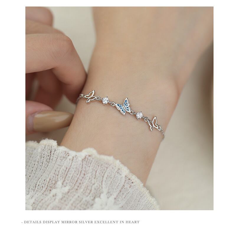S925 sterling silver small fresh sky blue Epoxy butterfly bracelet women's fashion niche exquisite high-end Mori jewelry | Daimaruya
