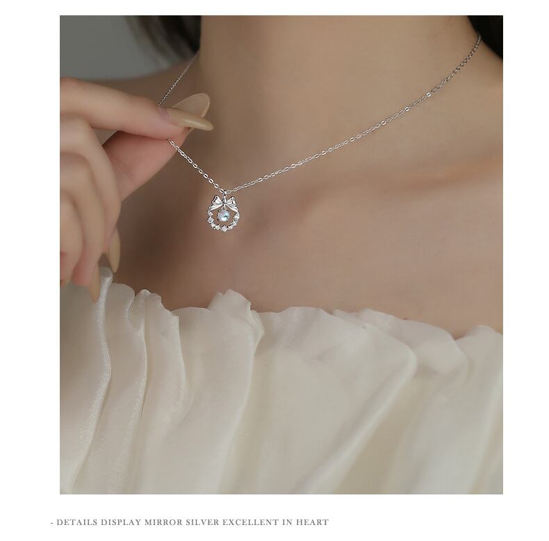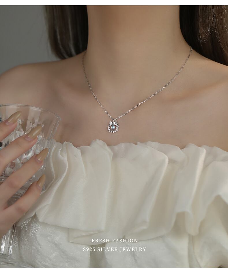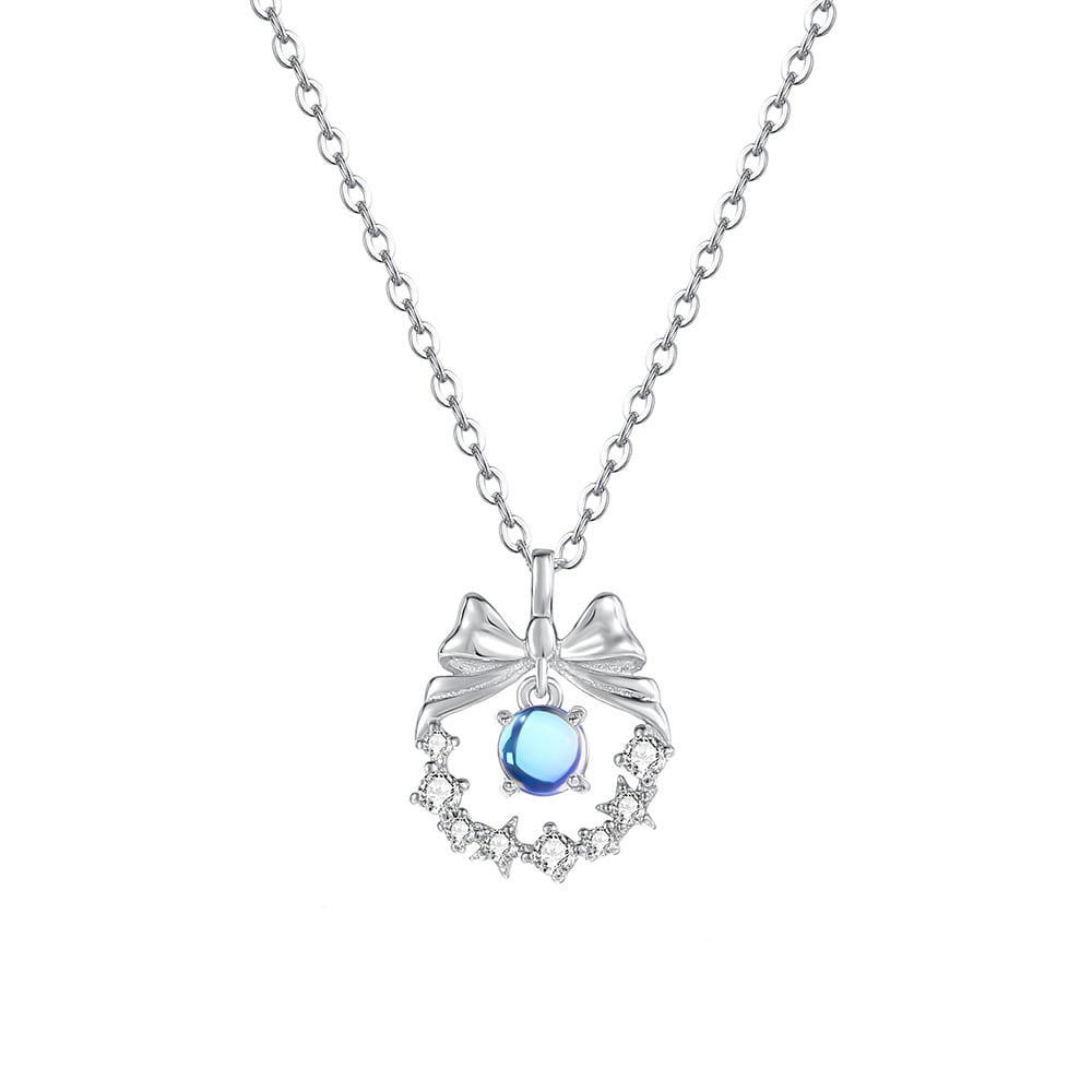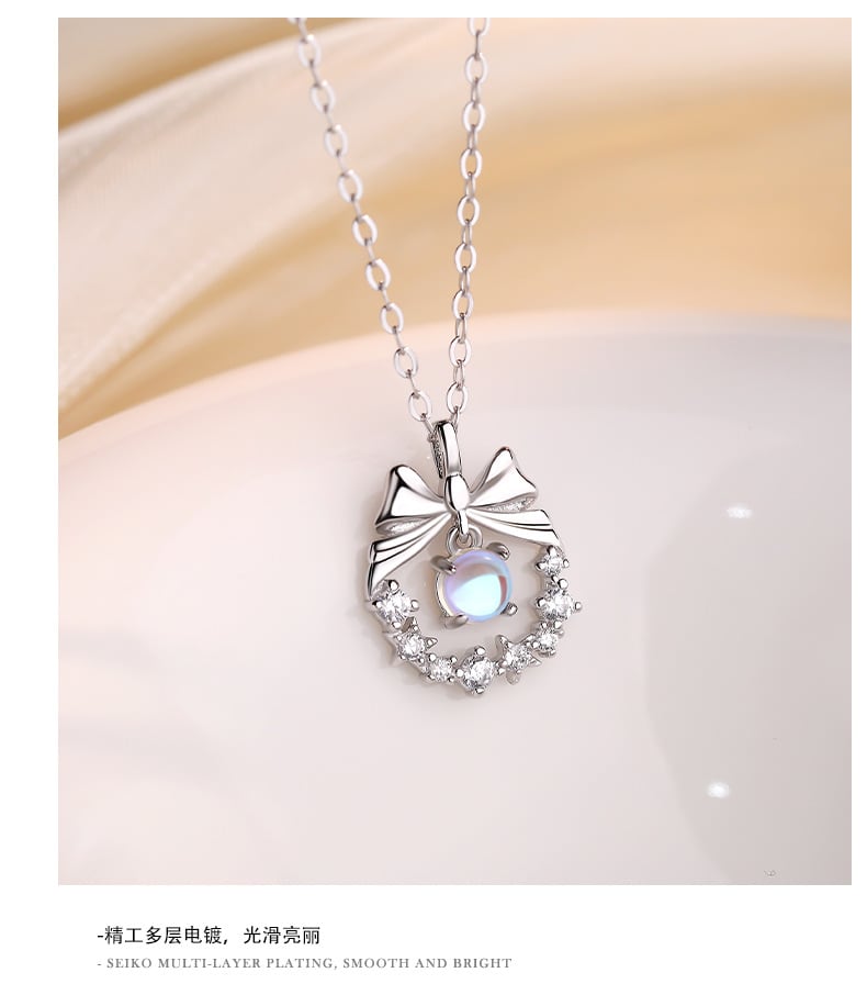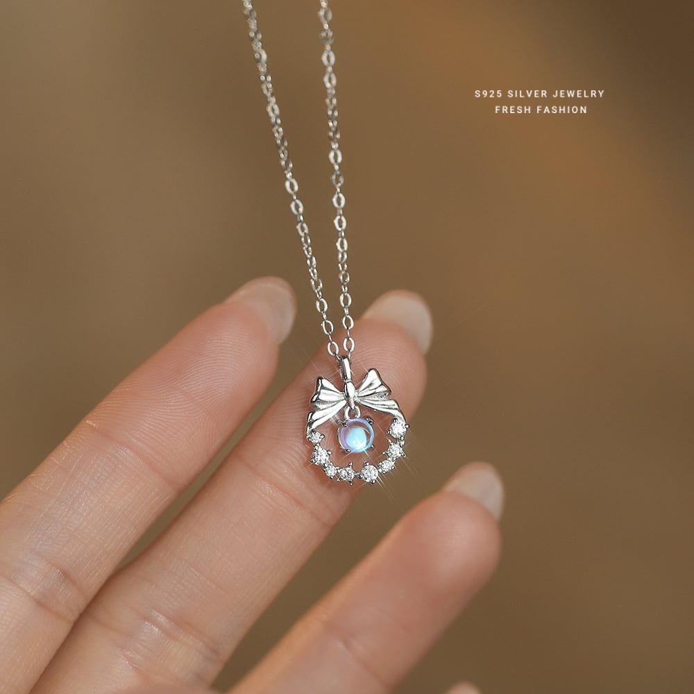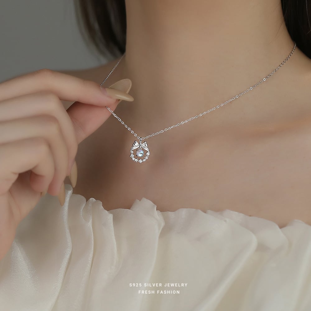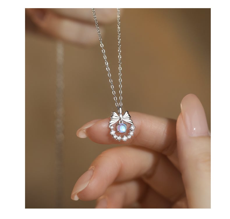 オリジナル S925 ピュアシルバー カラフル ムーンストーン 蝶結び ネックレス 女性用 ファッション 小清新 クールな鎖骨チェーン | Daimaruya