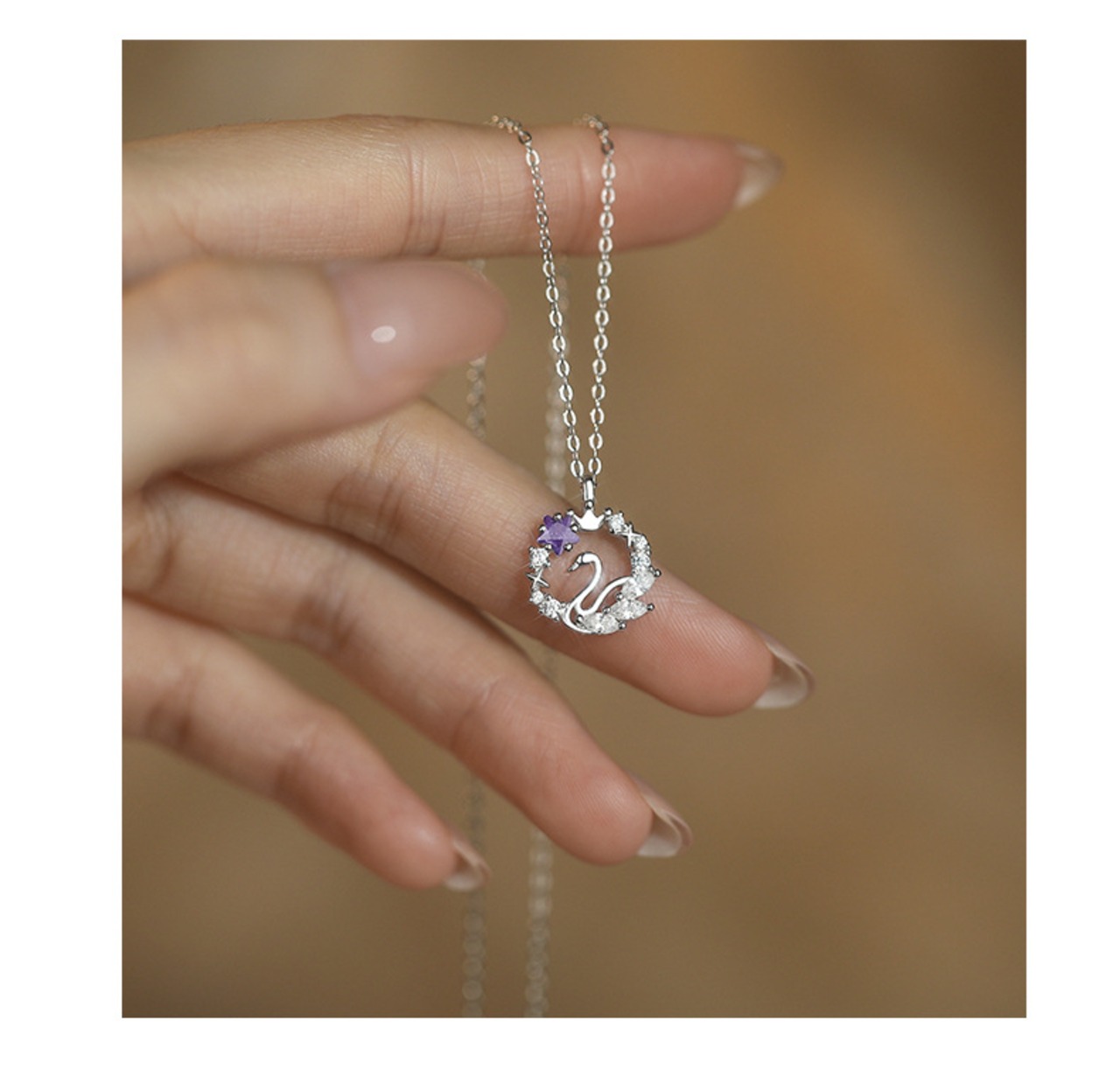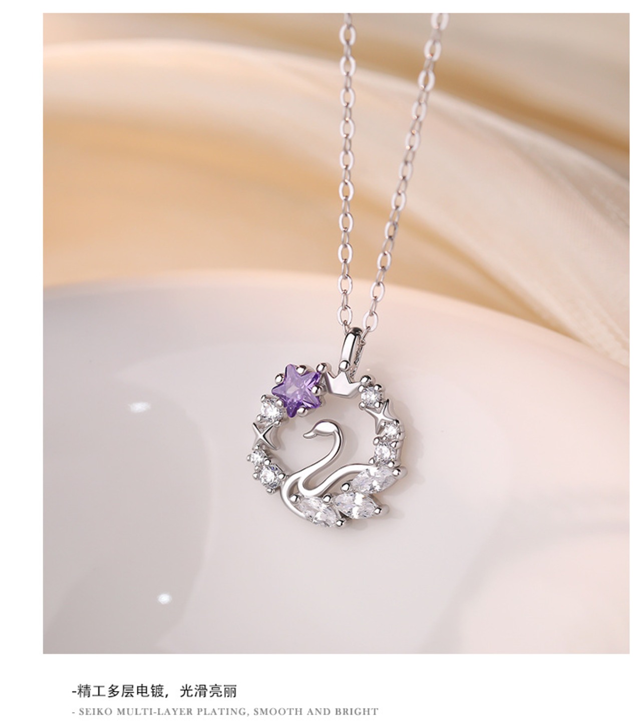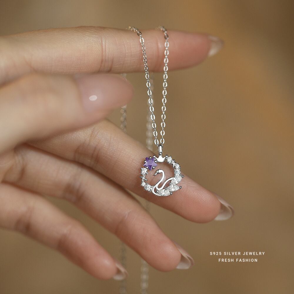 S925純銀 星の夢を追いかけるスワンネックレス 女性用 小型デザイン 高級感 ファッショナブルな輝く星の鎖骨チェーン | Daimaruya