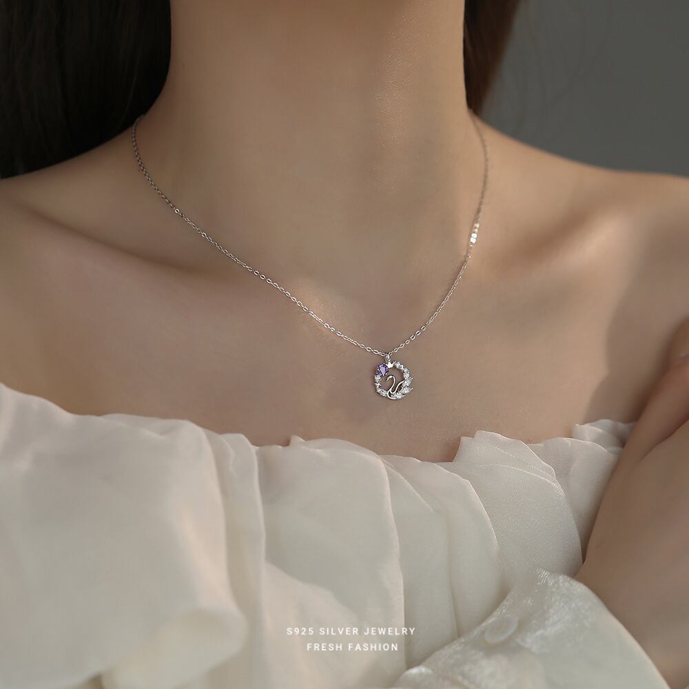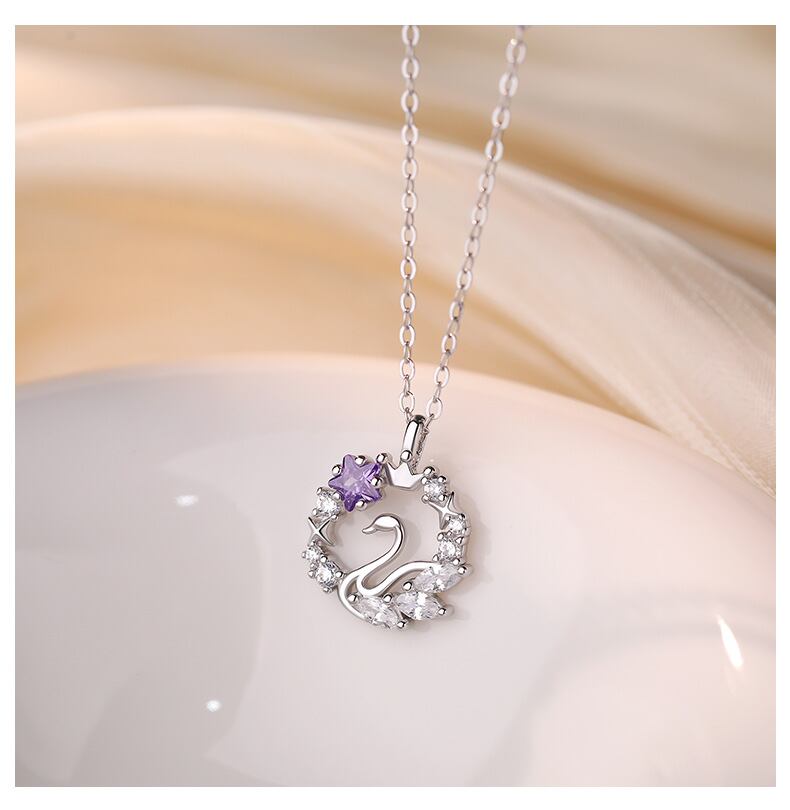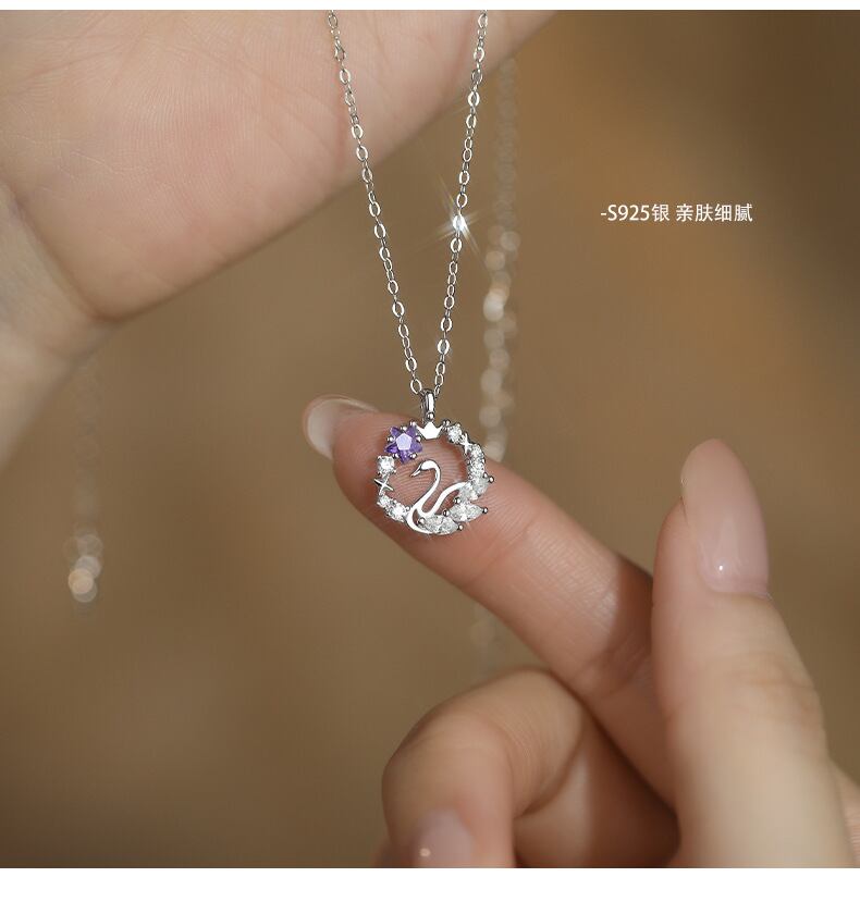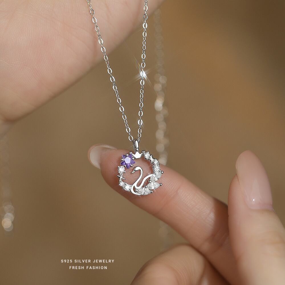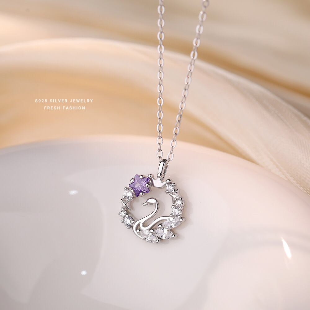 S925純銀 星の夢を追いかけるスワンネックレス 女性用 小型デザイン 高級感 ファッショナブルな輝く星の鎖骨チェーン | Daimaruya