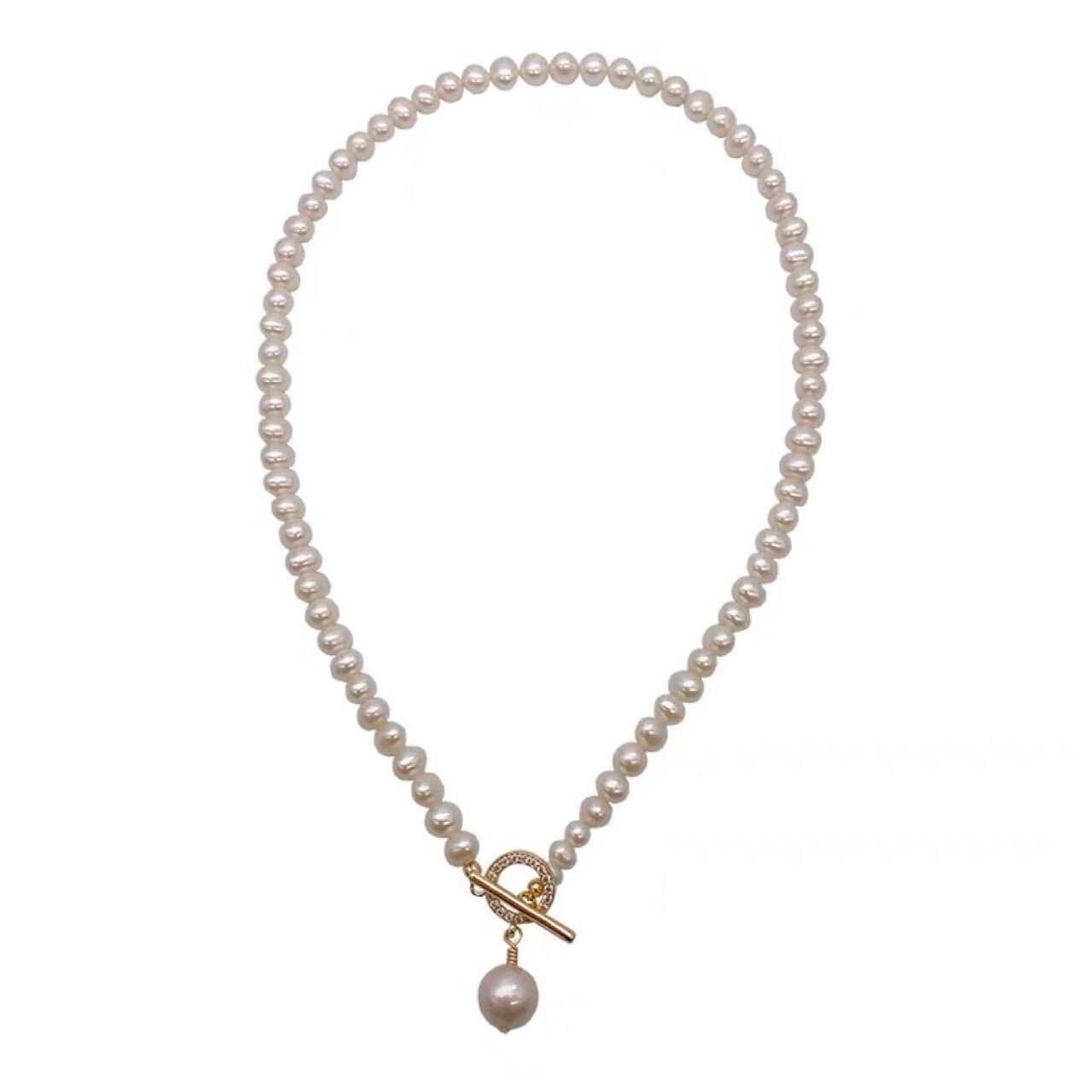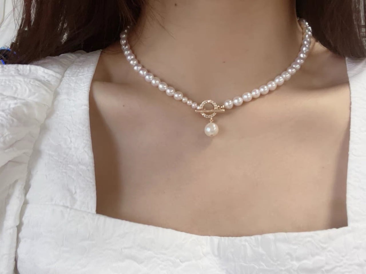 天然強光淡水パールダイヤモンドOTバックルネックレス|ラグジュアリー小型デザイン|インスタ映え冷淡風鎖骨チェーン女性用
