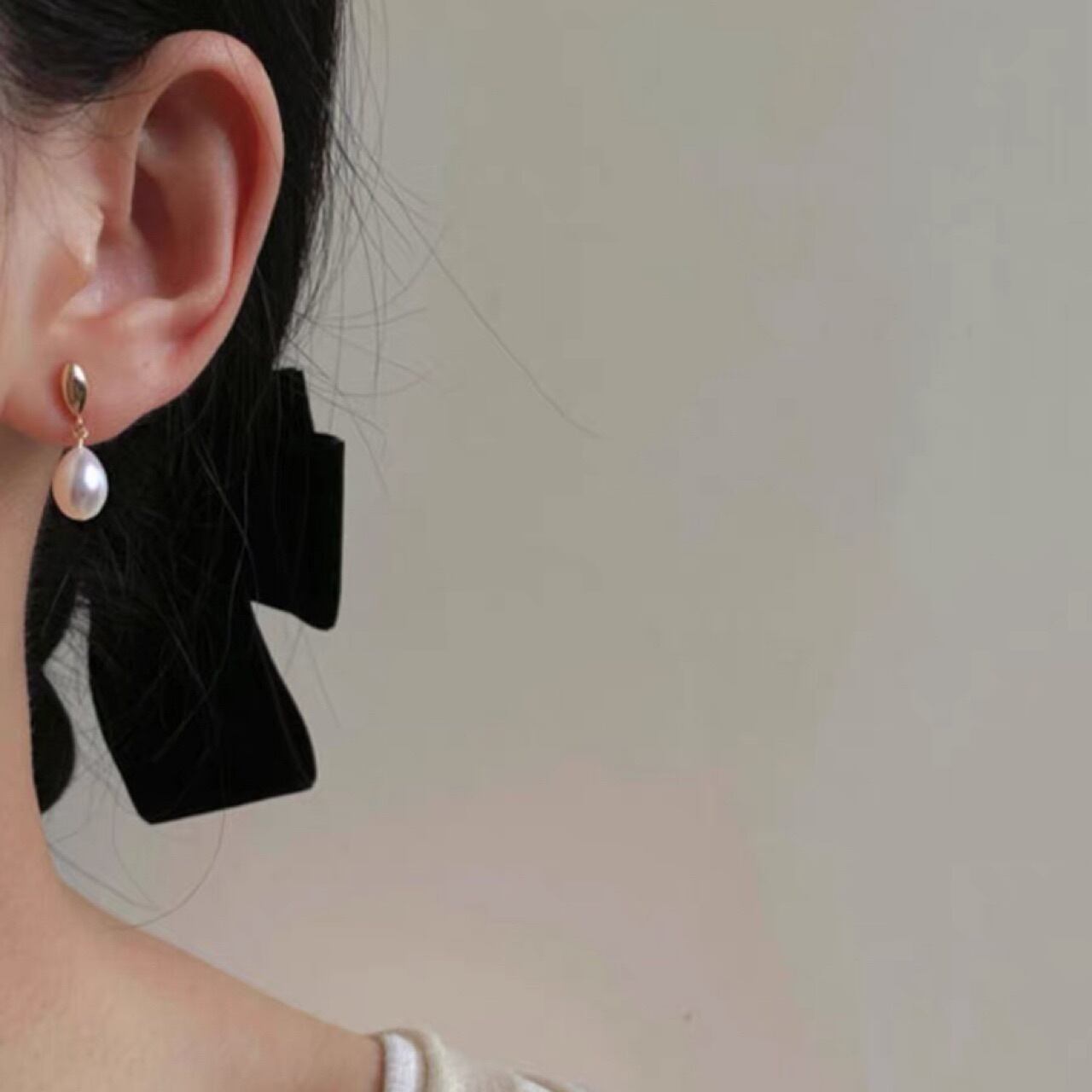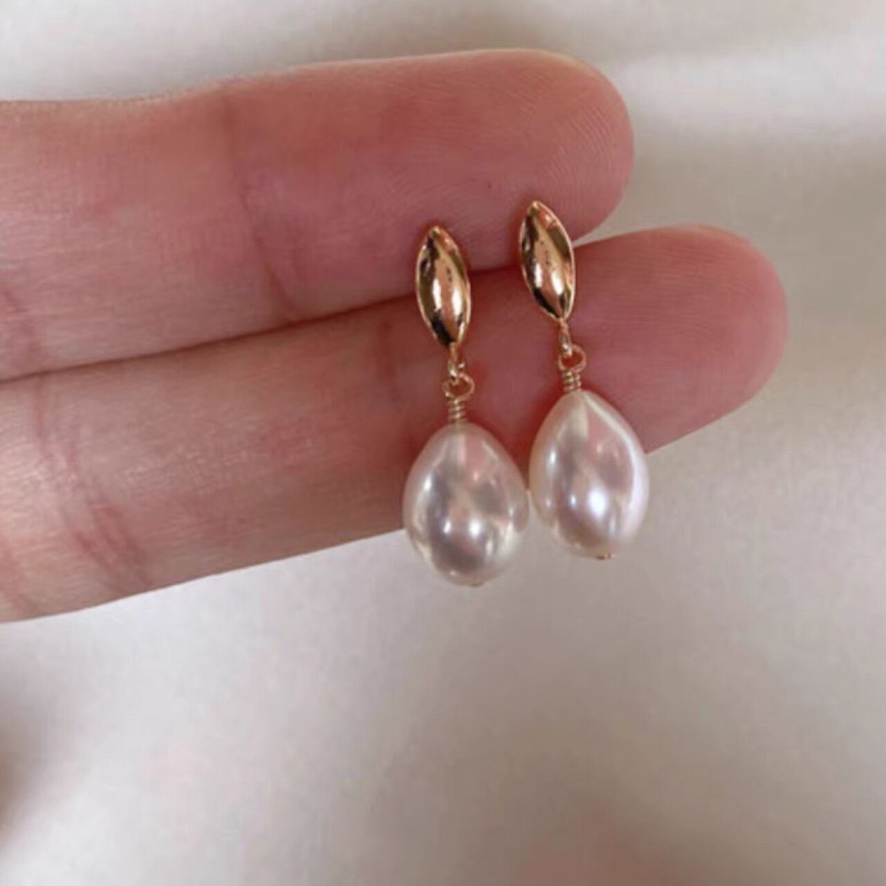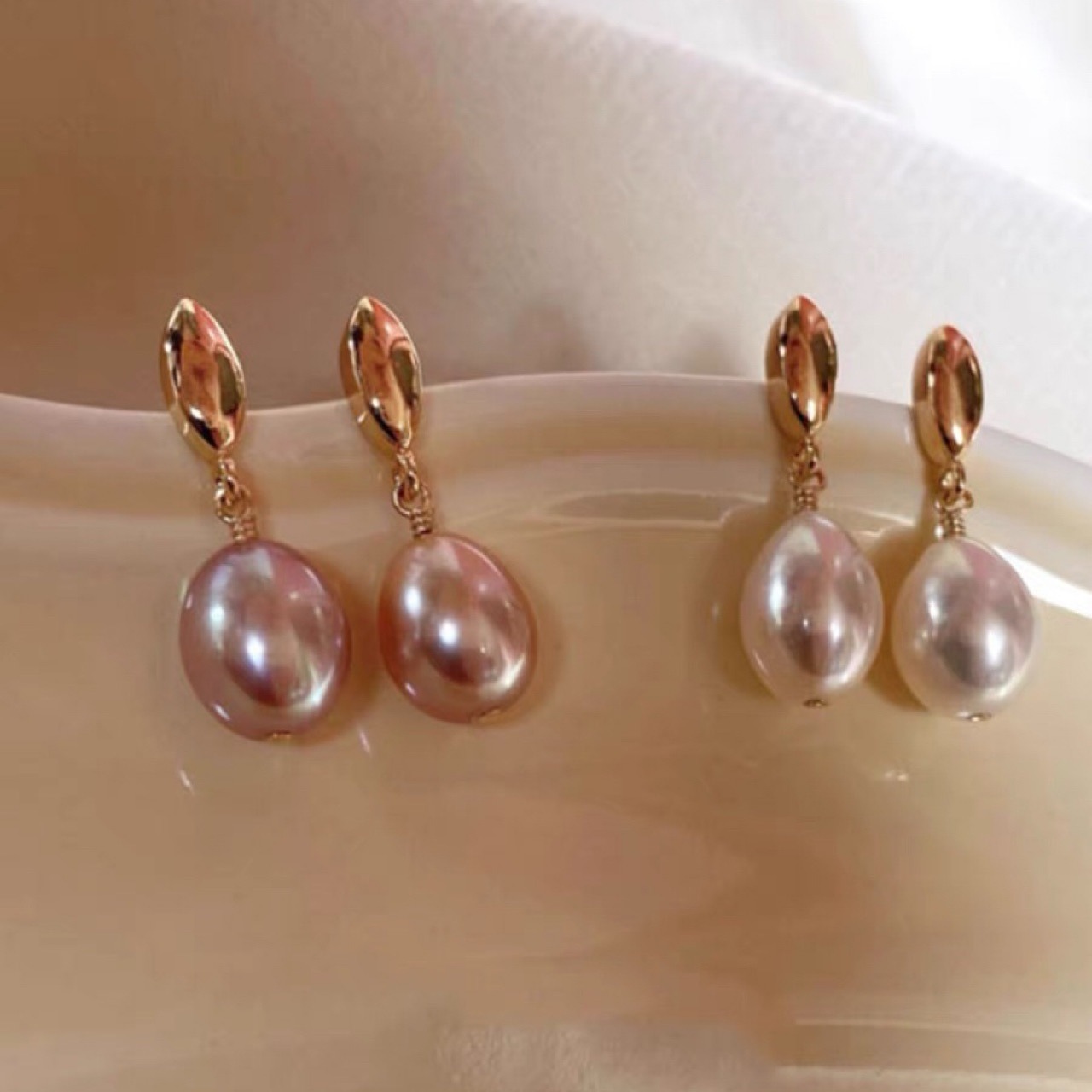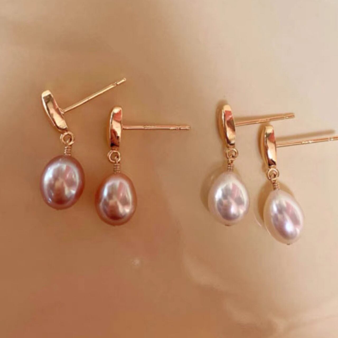 天然強光淡水パールイヤリング 小米珠 14Kゴールドメッキ米粒ピアス シンプルなシルバー針 レディース