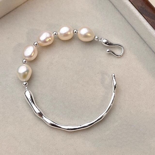 バロックデザインの天然パール手首用ブレスレット - テクスチャー半ブレスレット、ユニークな個性のギフト