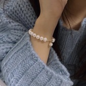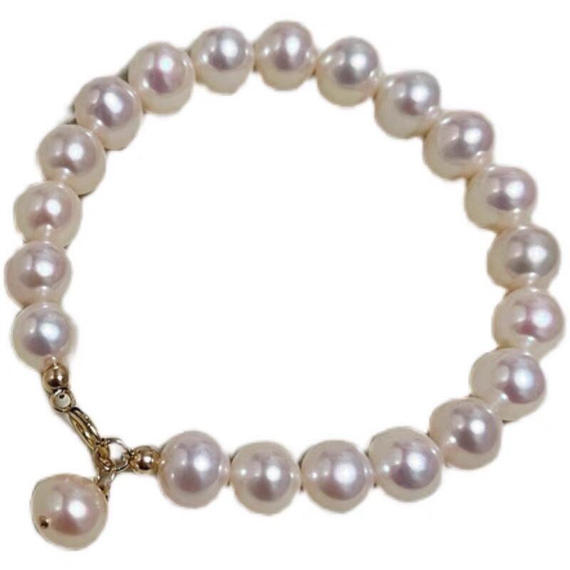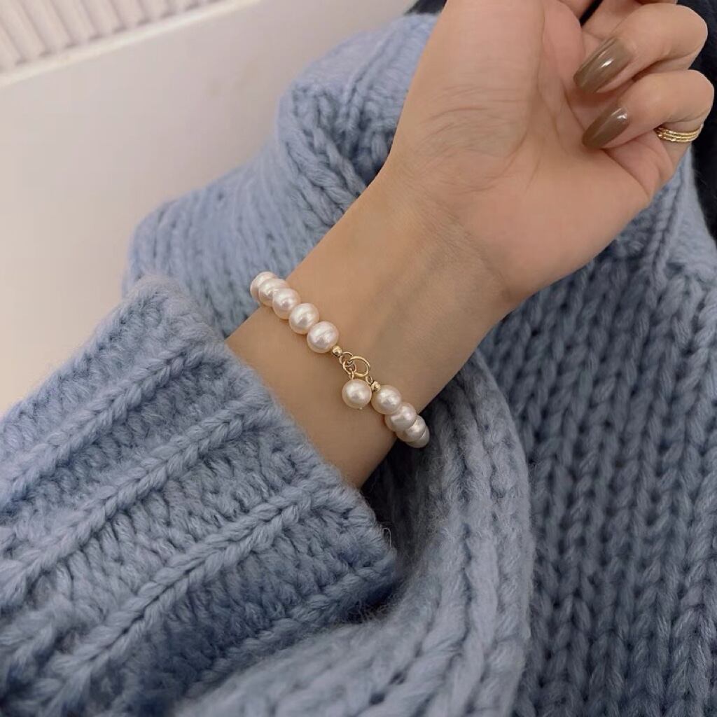 高級感のある大粒天然淡水パール無核ブレスレット女性用925シルバー18Kゴールドメッキシンプル個性的