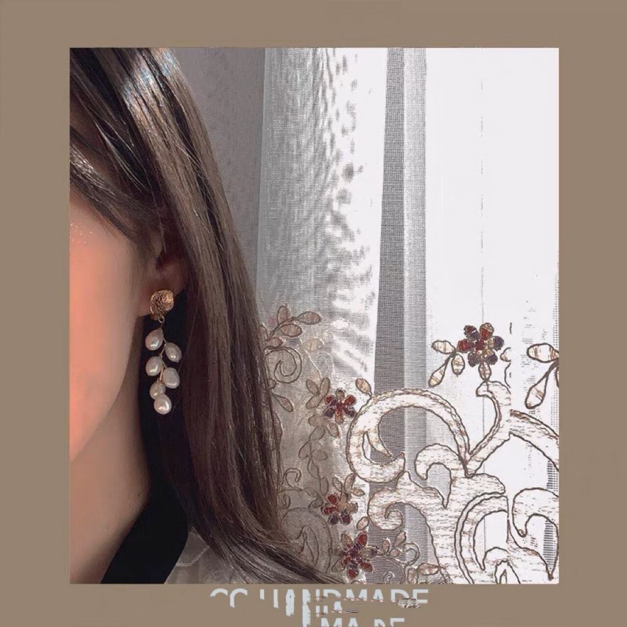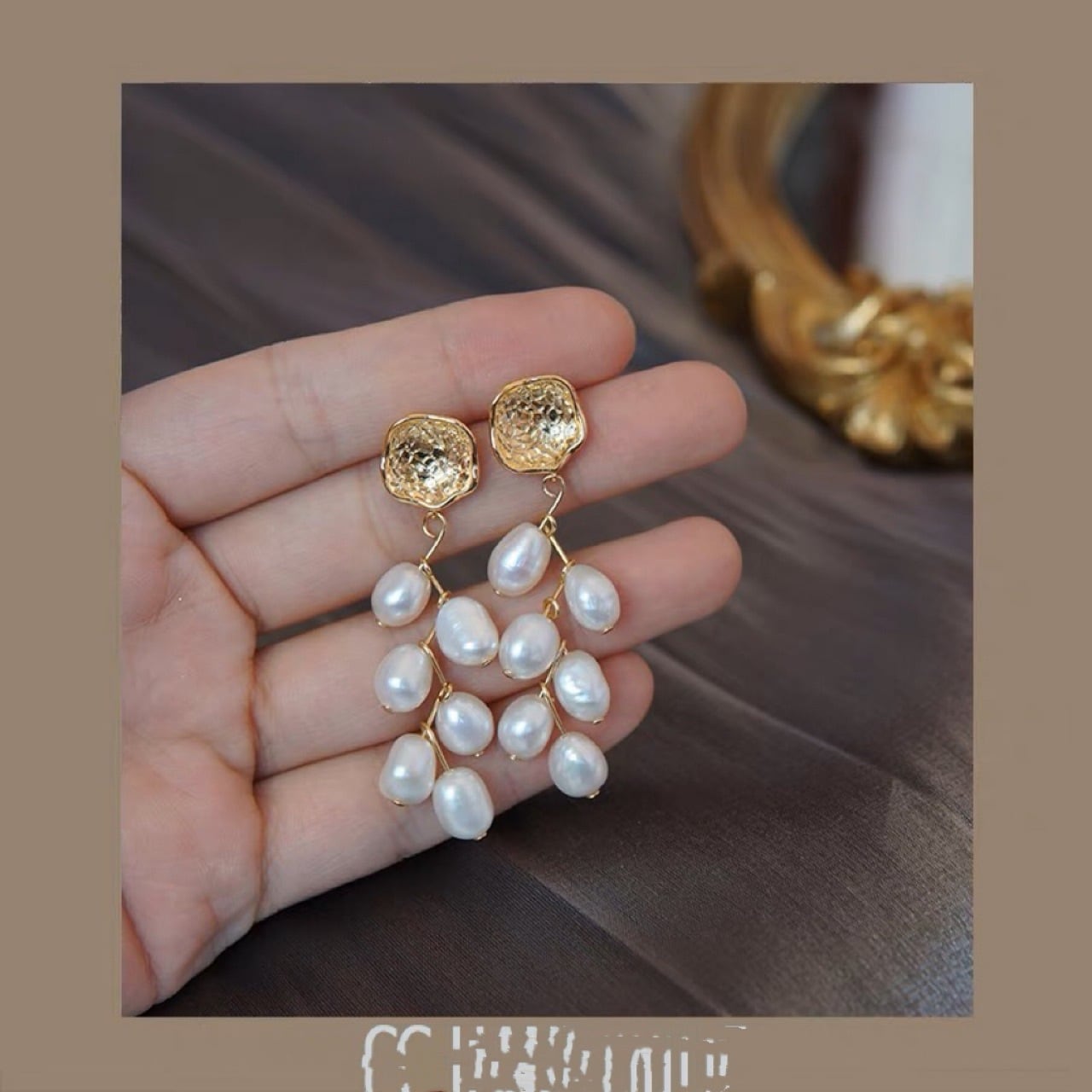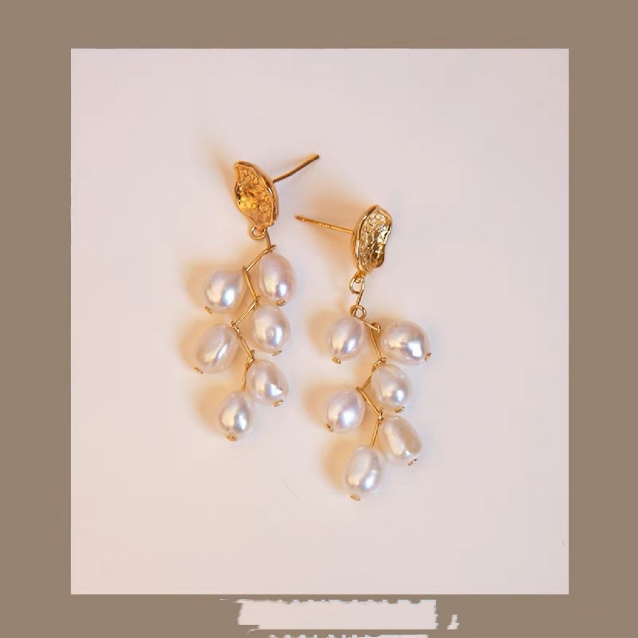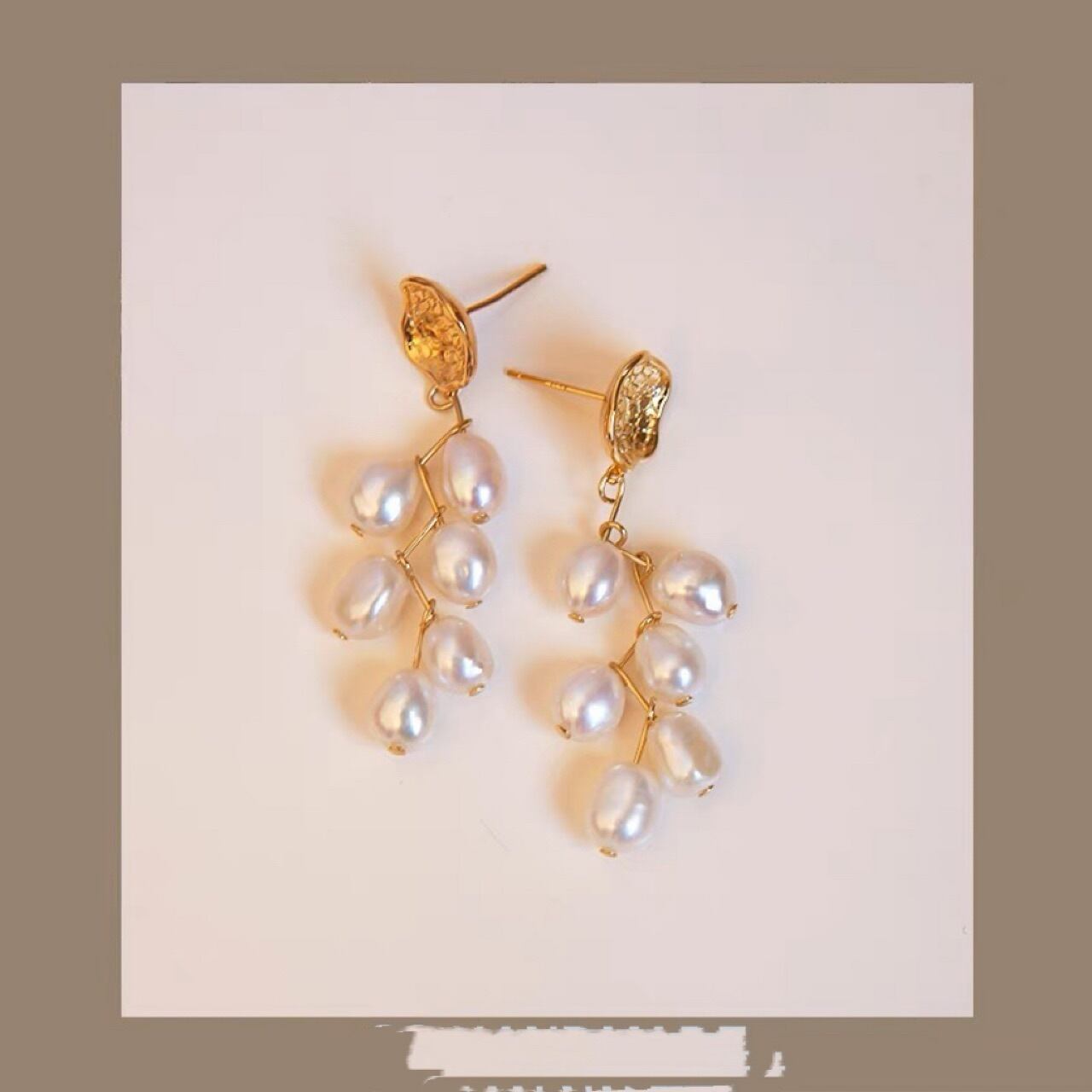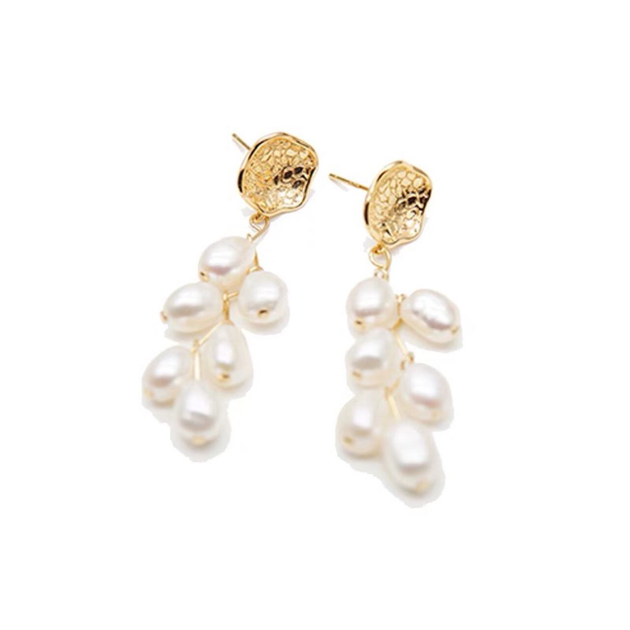 天然淡水バロックパール吊り下げイヤリング 多粒麦の穂 シルバー針イヤリング シンプルで抽象的なデザイン レディース