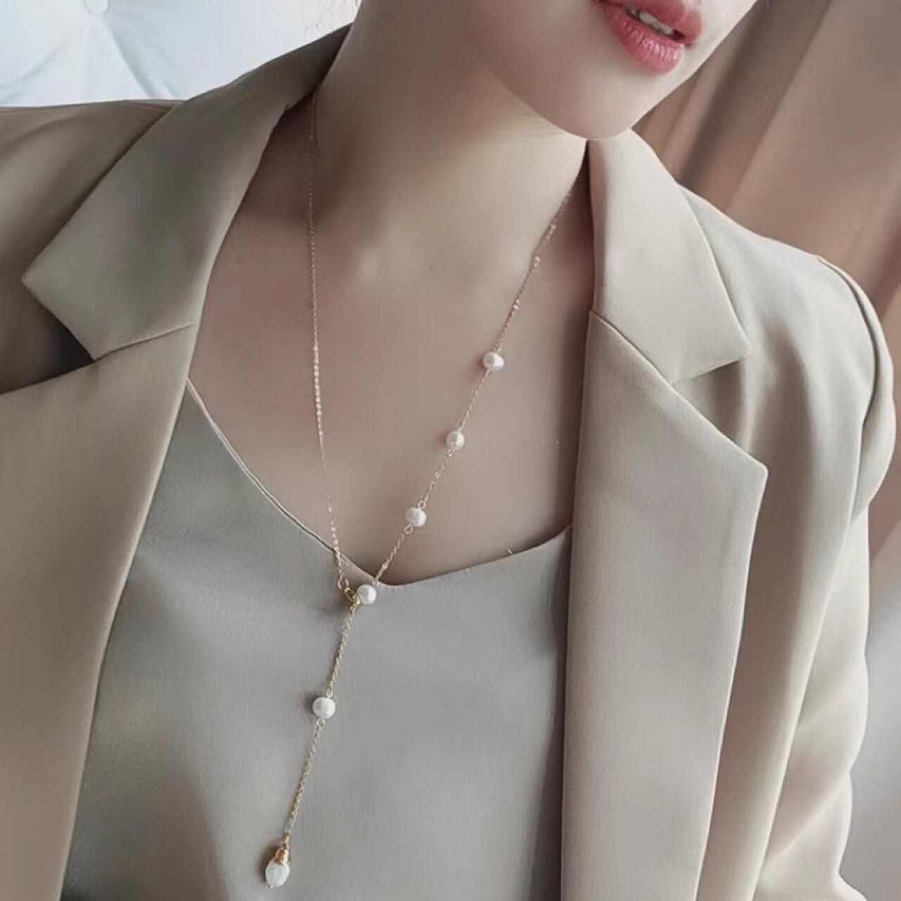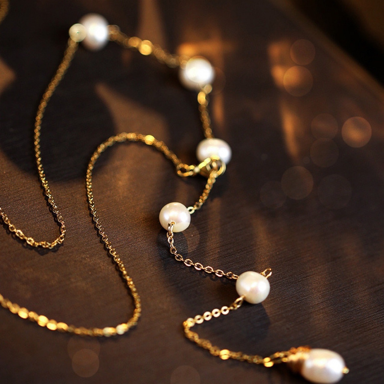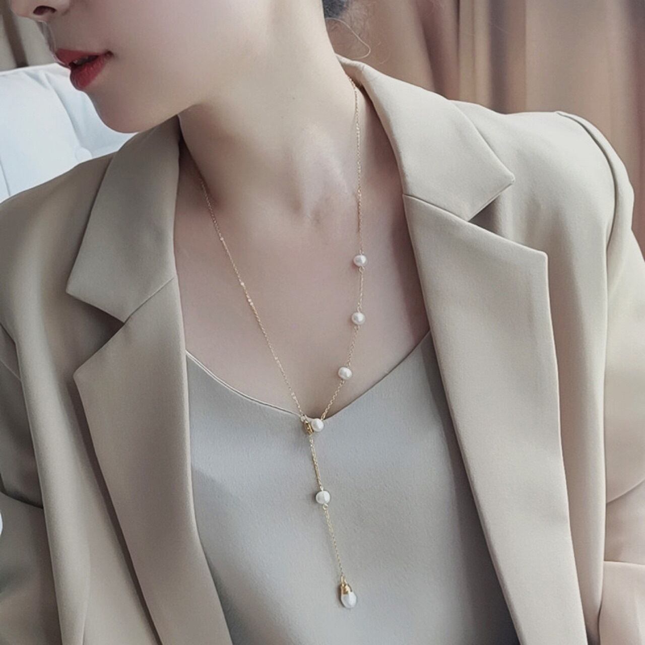 小軽奢天然淡水パールロングネックレス 調整可能な小?感 おしゃれなロングセーターチェーン