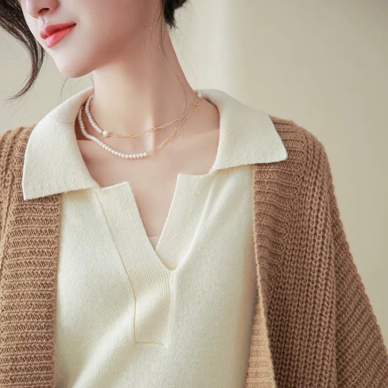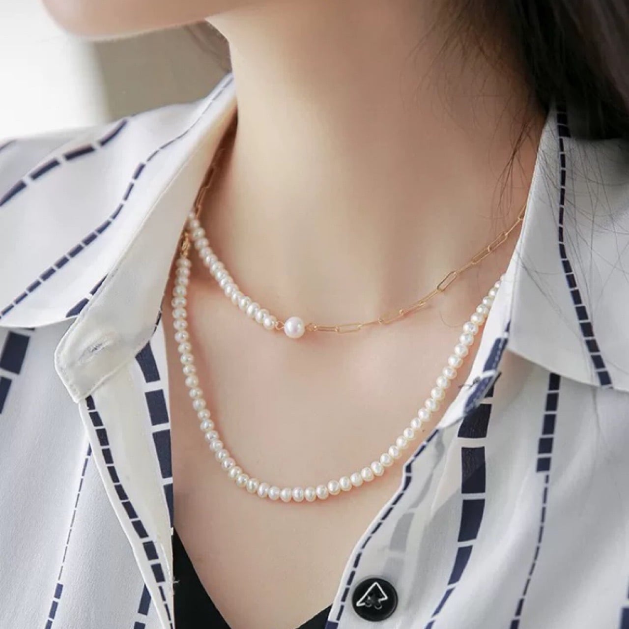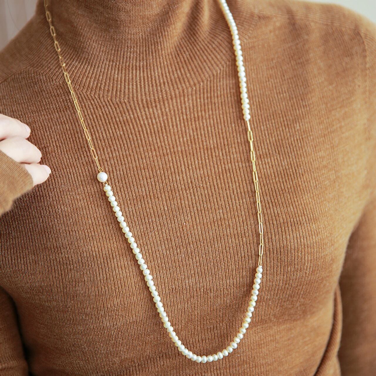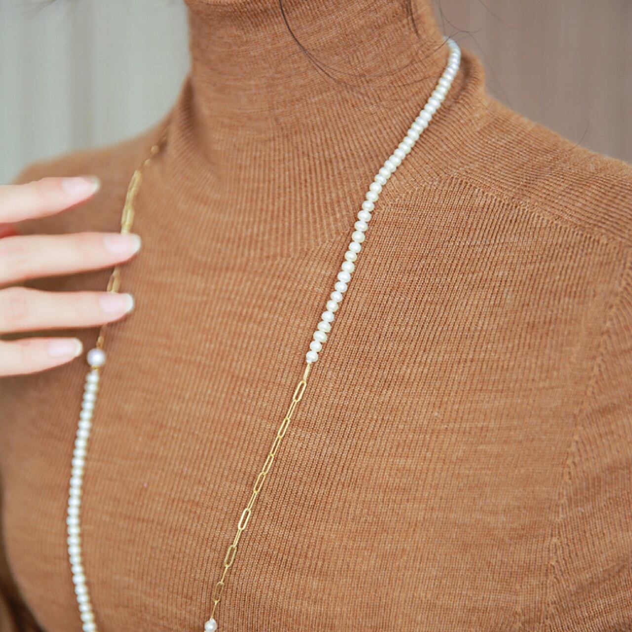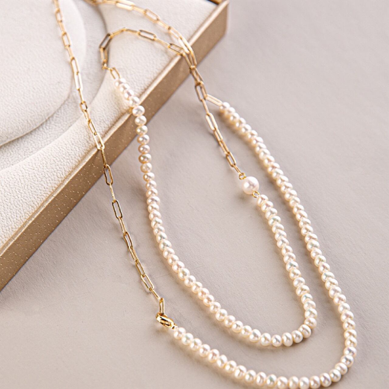 14K注金パールネックレス - 軽奢ファッション、1重?2重の着用スタイル、毛衣チェーン