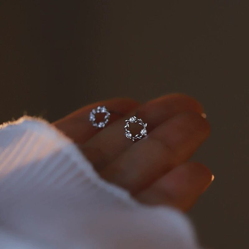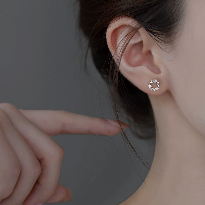 華やかな花冠の模様のピアス、耳元にやさしい印象を与える