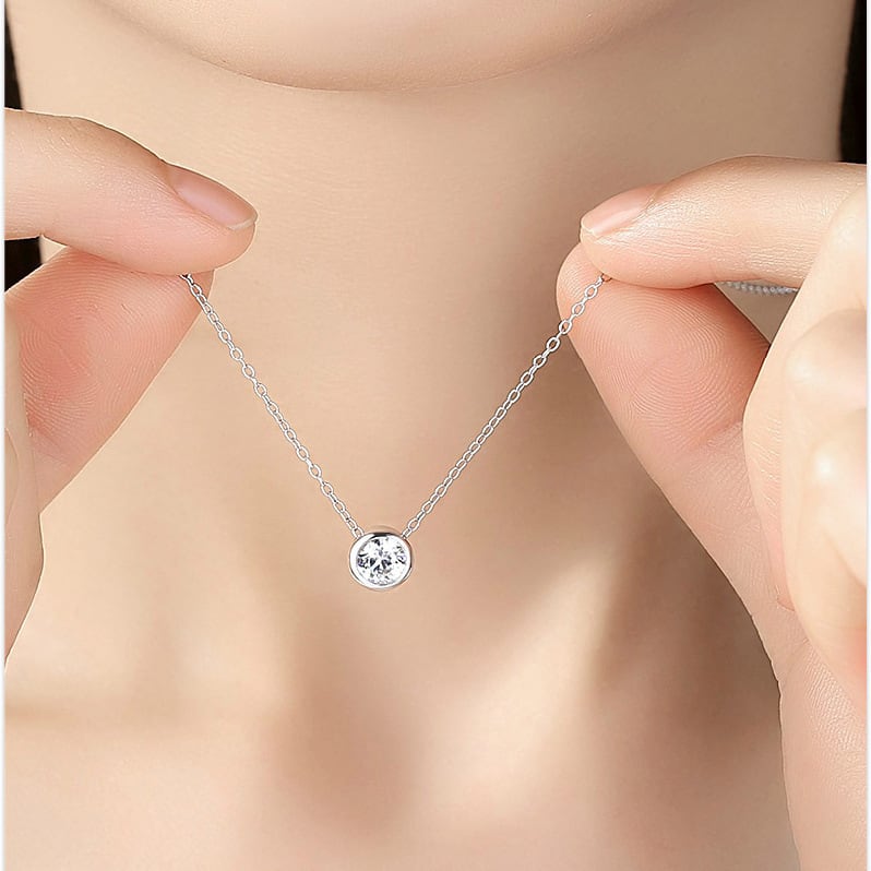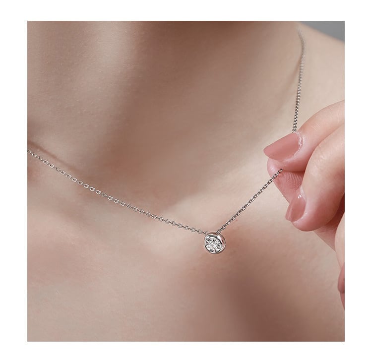 大人上品 一粒ジルコニア ネックレス S925 シルバー シンプル 華奢