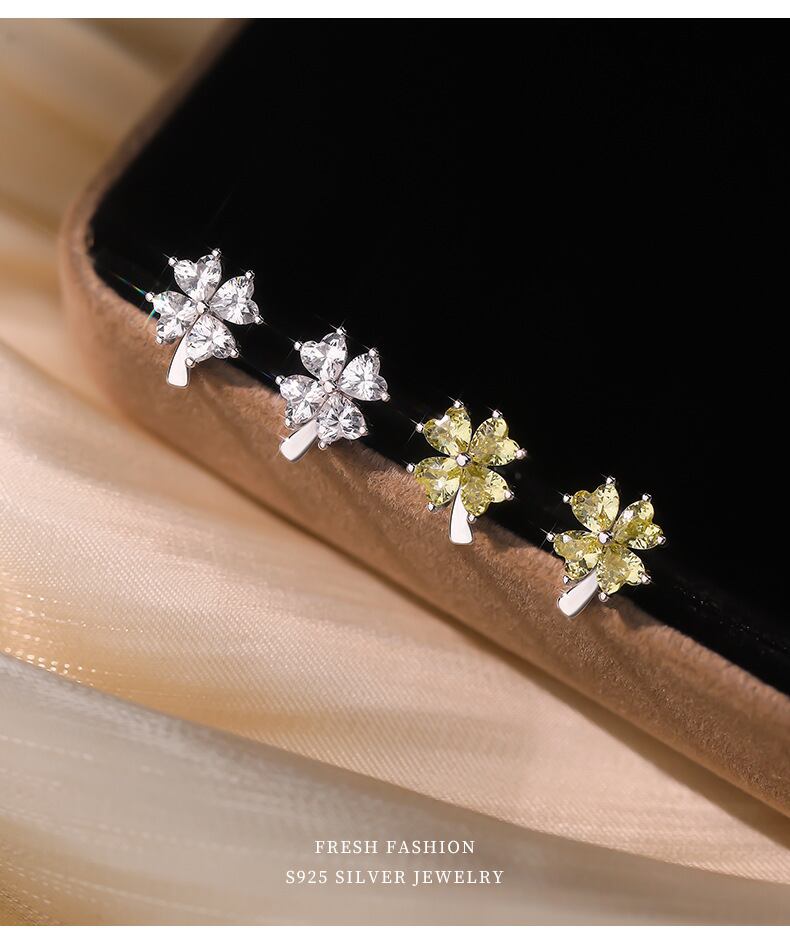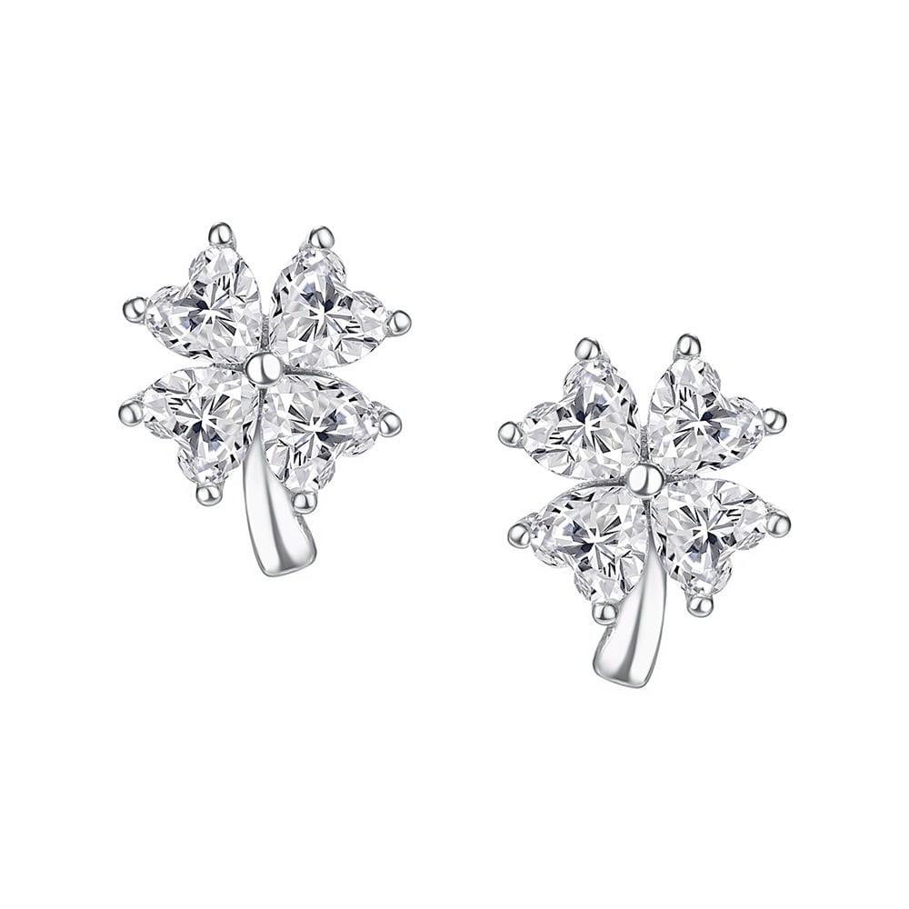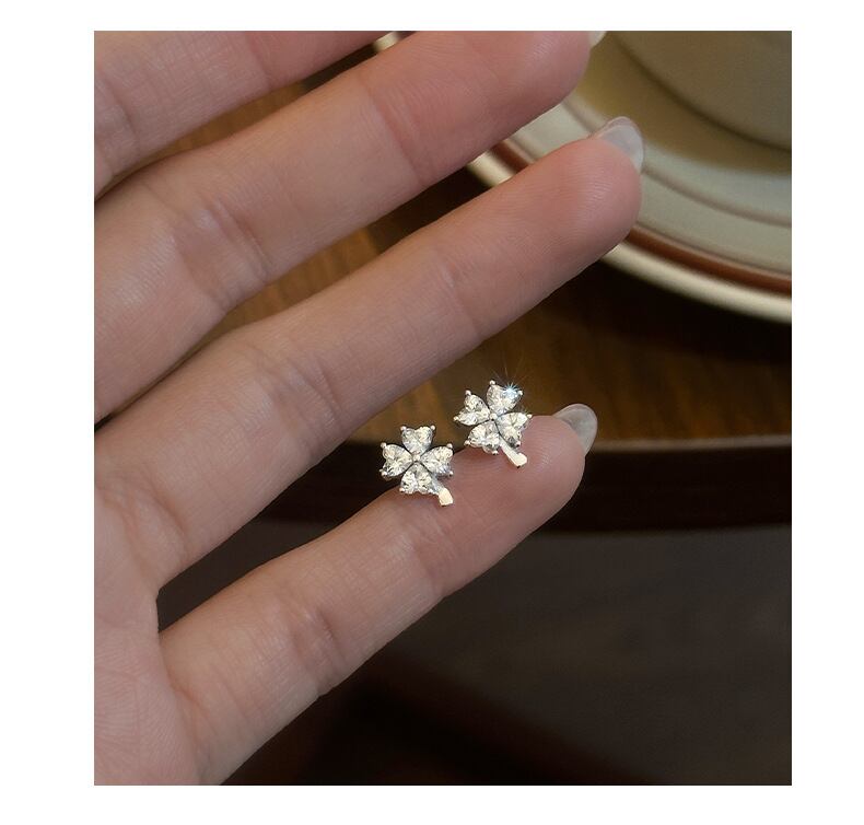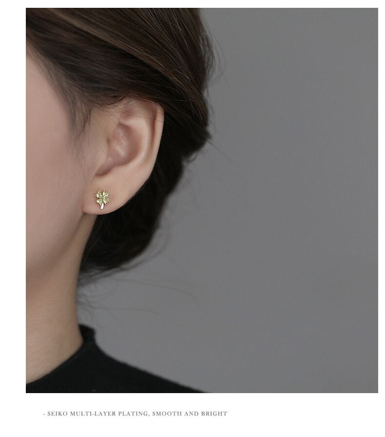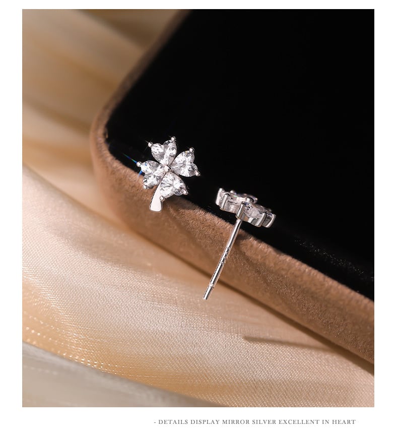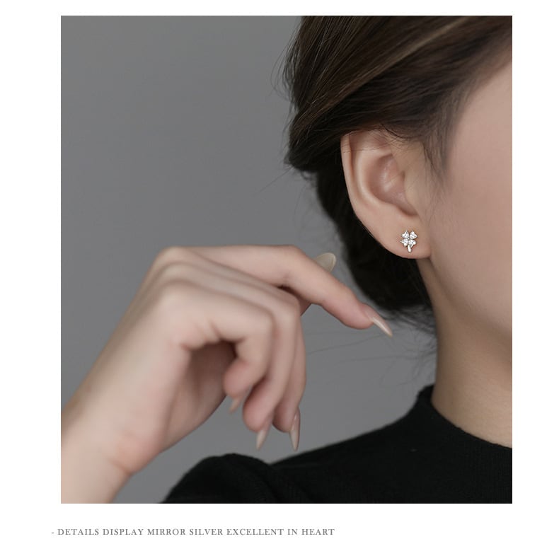 ピアス / 四つ葉 / クローバー / ジルコニア / シルバーアクセサリー / 小ぶりピアス / 上品アクセ / 大人可愛い / 幸運モチーフ / ギフト / プレゼント