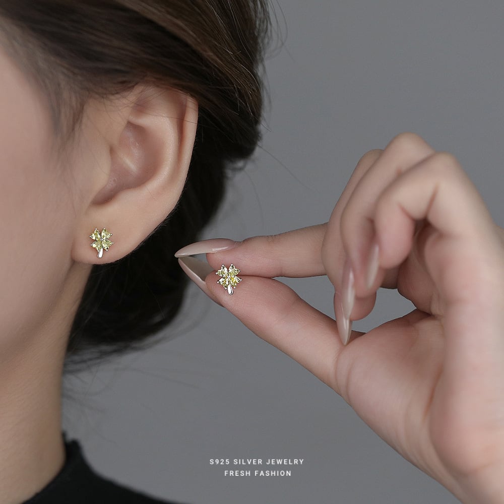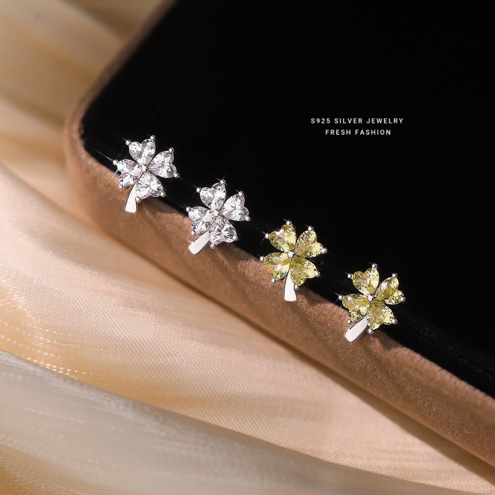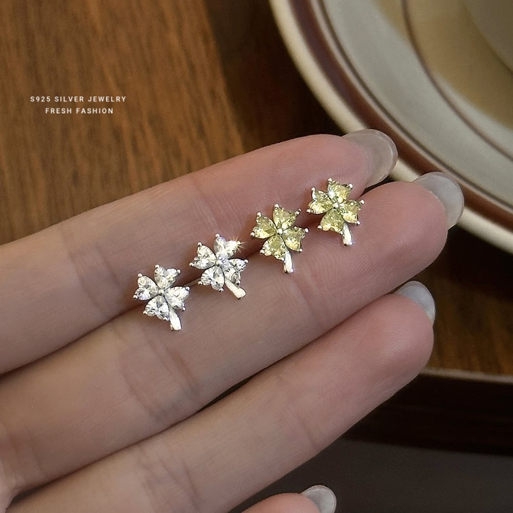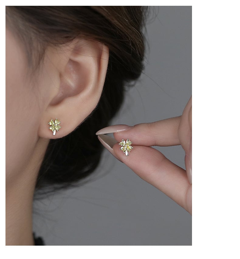 ピアス / 四つ葉 / クローバー / ジルコニア / シルバーアクセサリー / 小ぶりピアス / 上品アクセ / 大人可愛い / 幸運モチーフ / ギフト / プレゼント