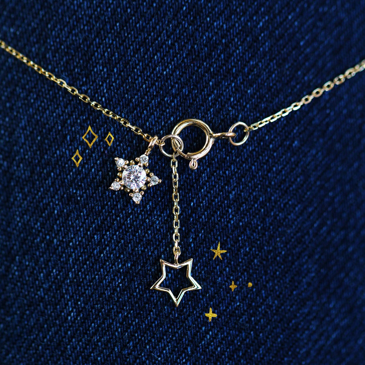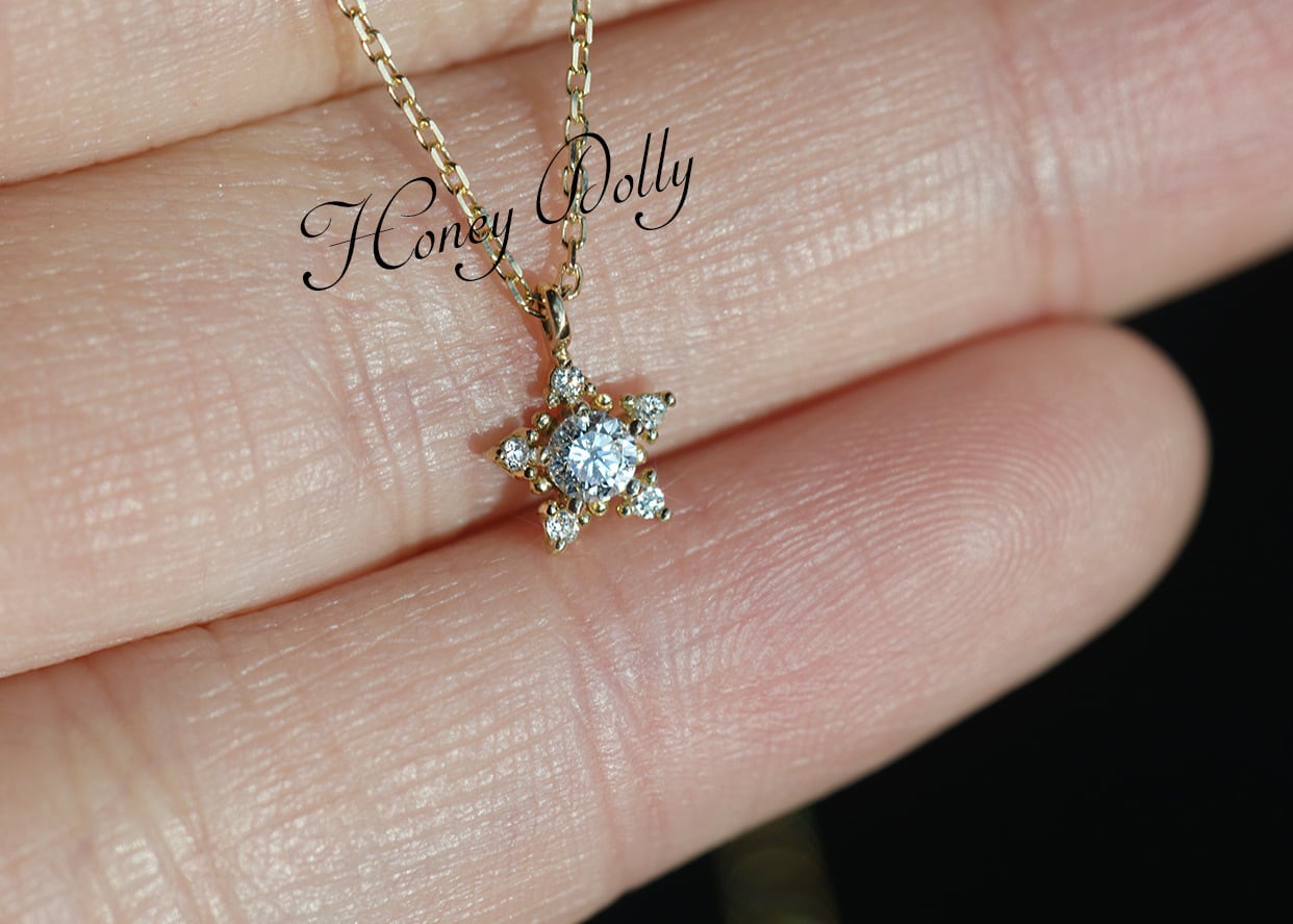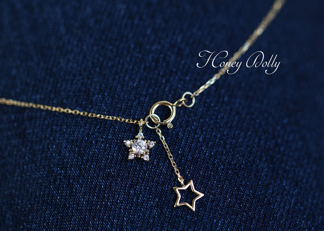 オリジナル星ジルコニア ネックレスK14仕上げ 華奢ネックレス レディース アクセサリー