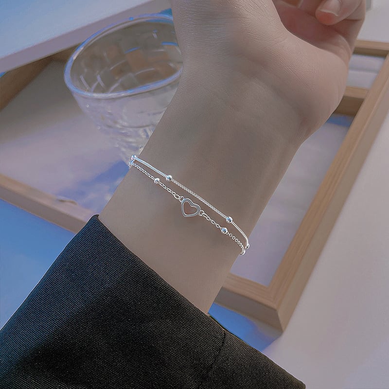 二重ハート ブレスレット シルバー925 K18仕上げ レディース アクセサリー