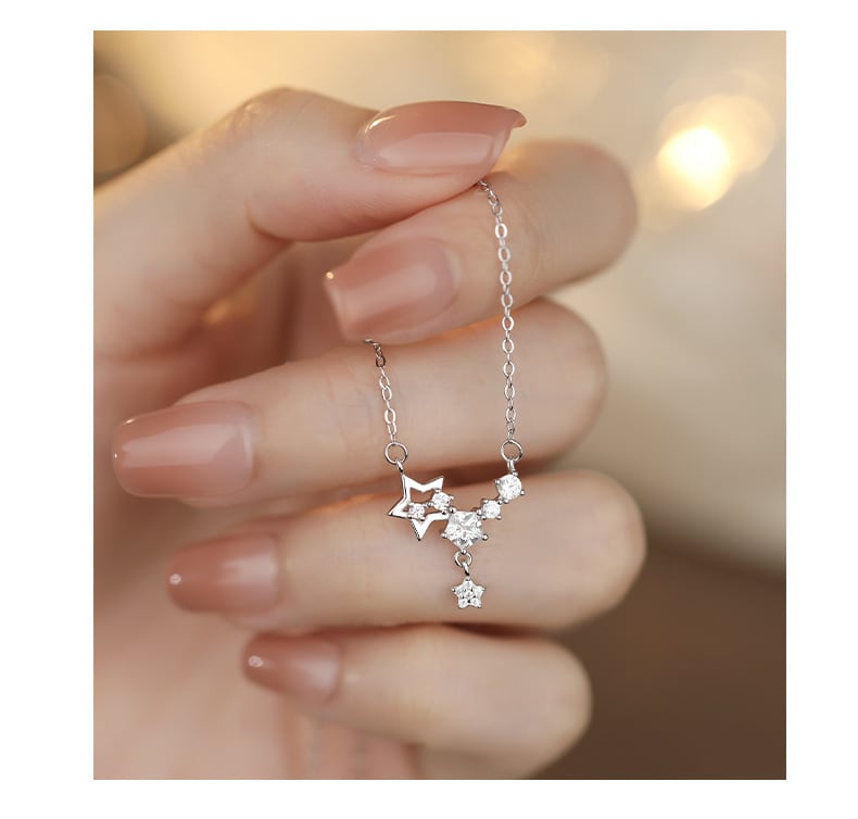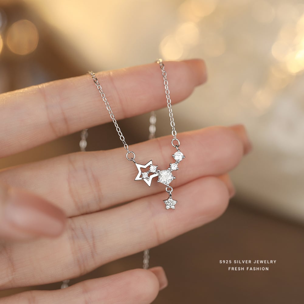 星 ネックレス K18仕上げ ジルコニア S925 シルバー レディース華奢アクセサリー