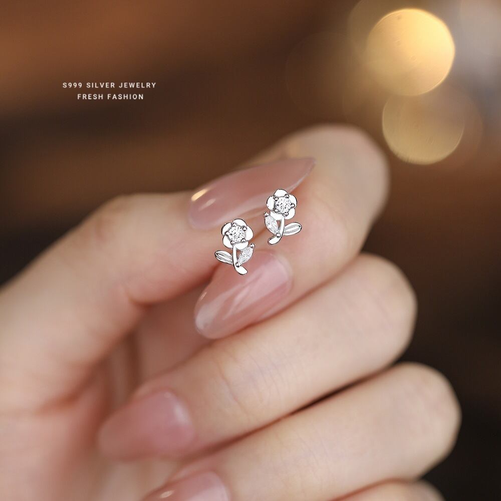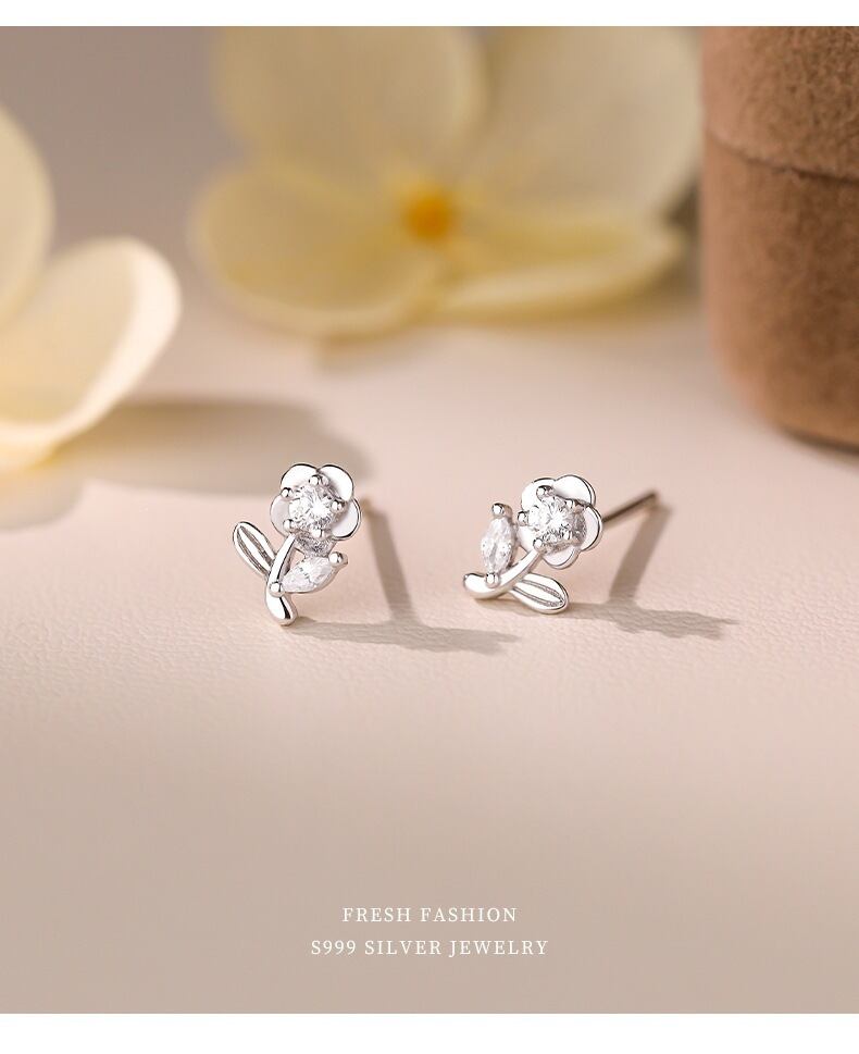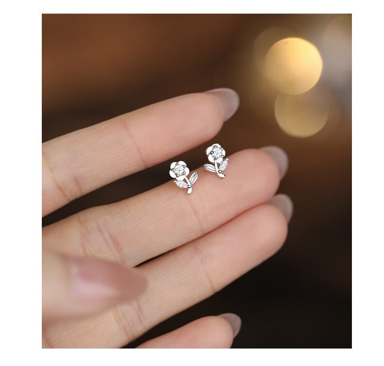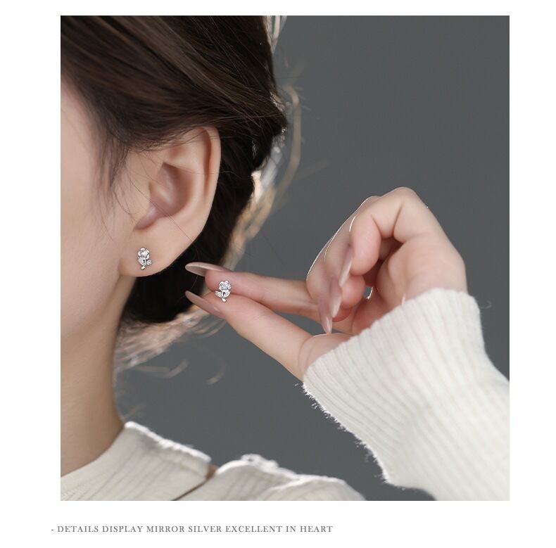 ローズ ピアス ジルコニア K18仕上げ S999 シルバー 小ぶり 上品アクセサリー レディース