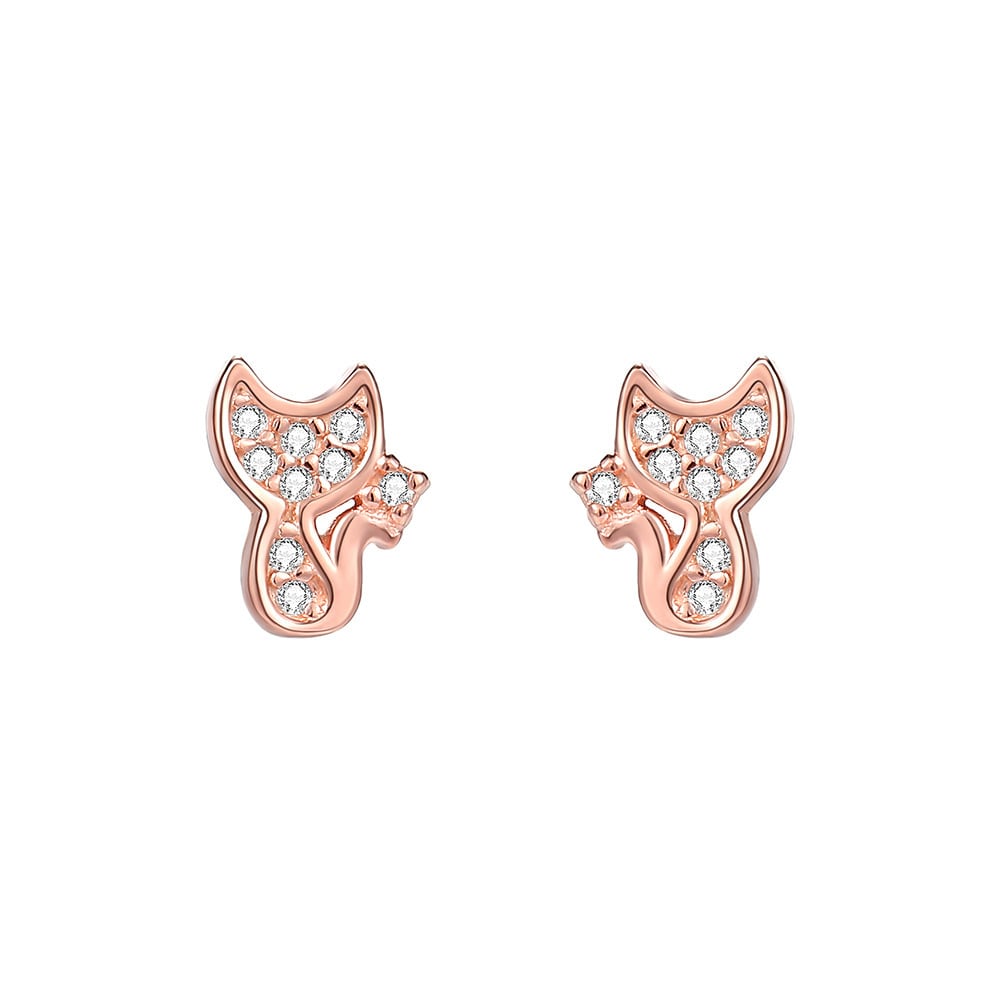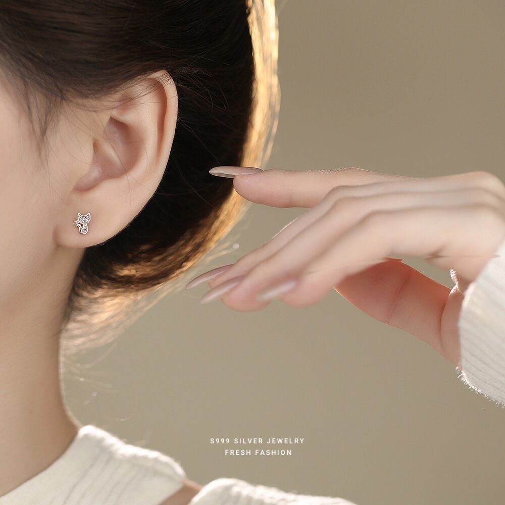 キュート猫 ピアス ジルコニア K18仕上げ S999 シルバー 小ぶり 上品アクセサリー レディース