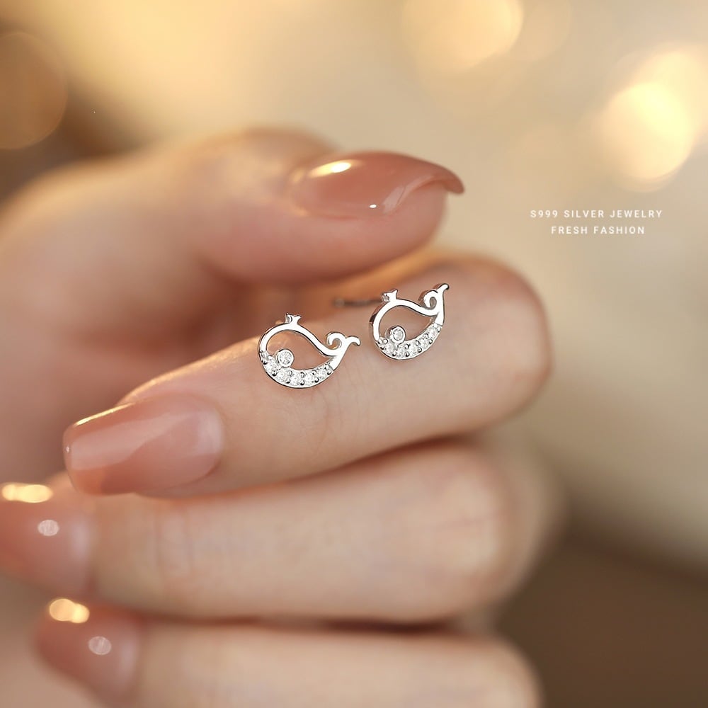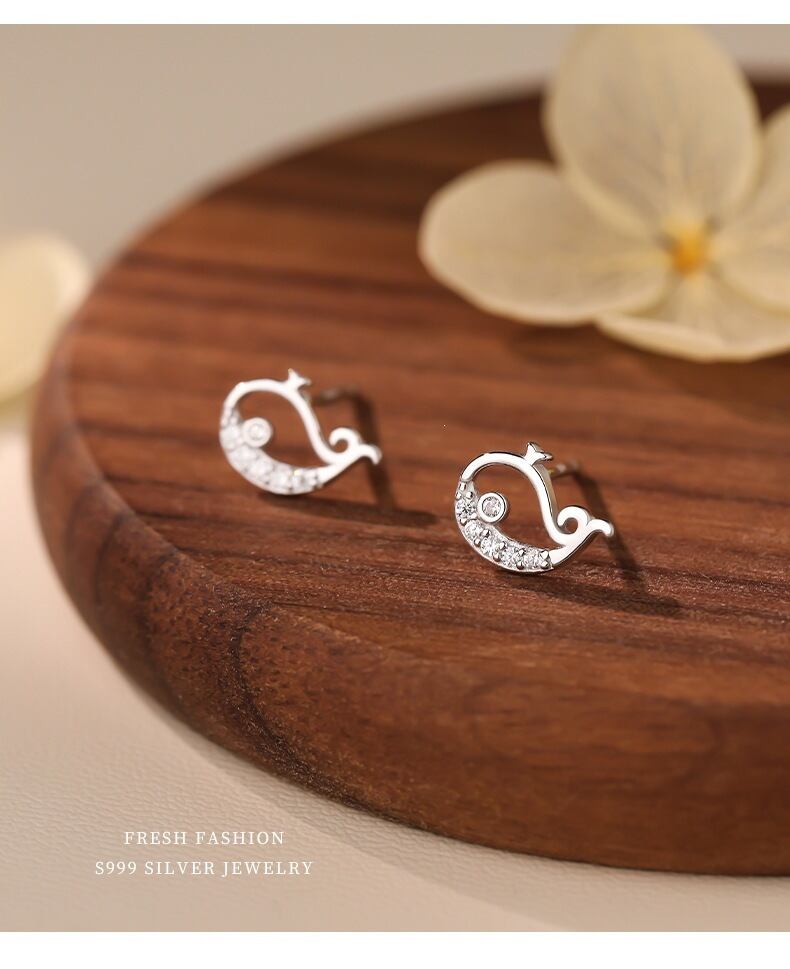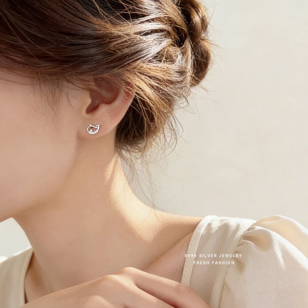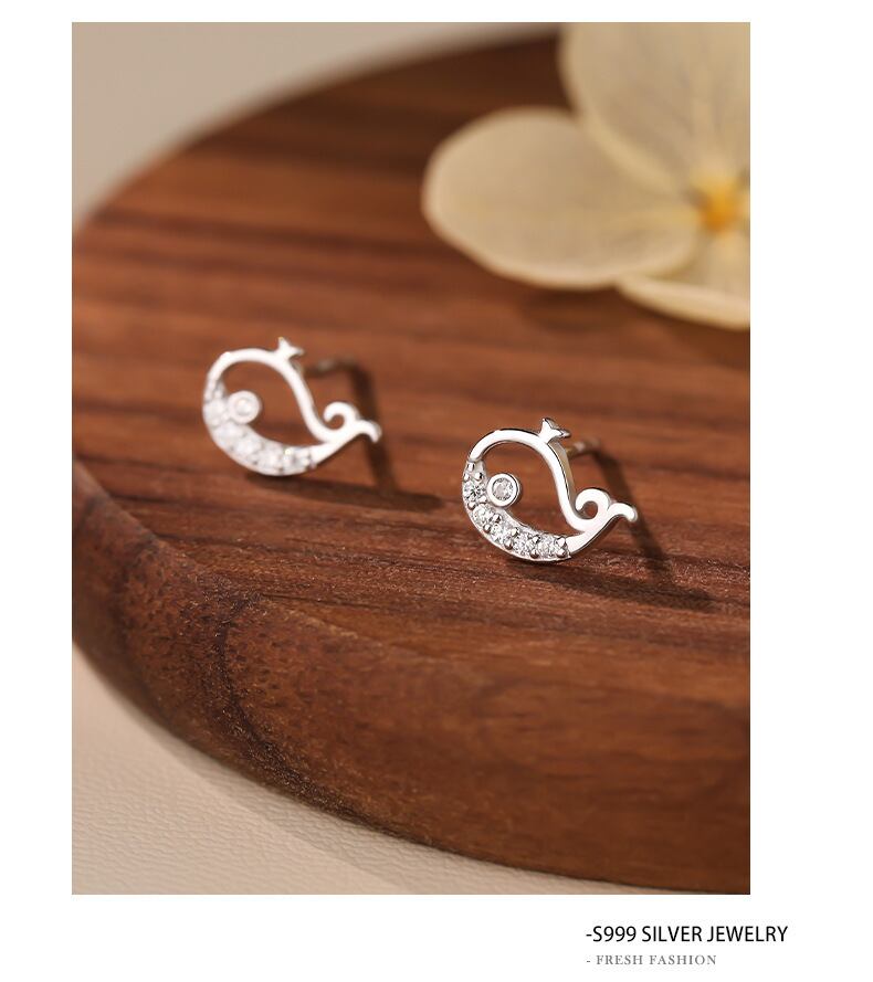 子鯨 ピアス ジルコニア K18仕上げ S999 シルバー 小ぶり 上品アクセサリー レディース