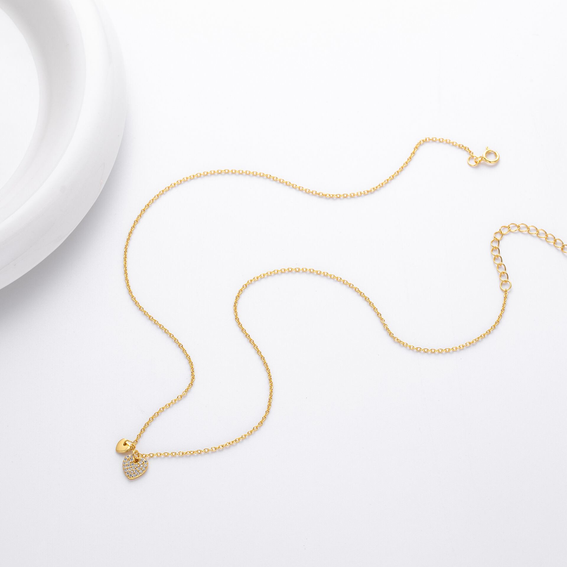ハート ネックレス K18仕上げ ジルコニア S925 シルバー レディース華奢アクセサリー