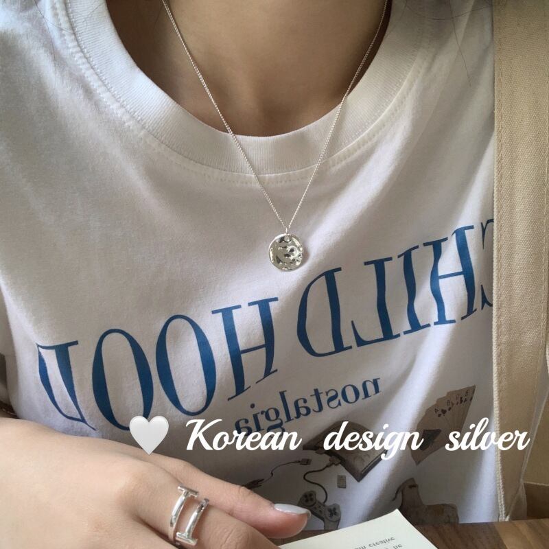 韓国ファション ディスク コイン ネックレス 無地 レディース シンプル シルバー ネックレス ペタル 丸 金属アレルギー対応 シルバー925 silver925 長さ40cm おしゃれ 大人 可愛い