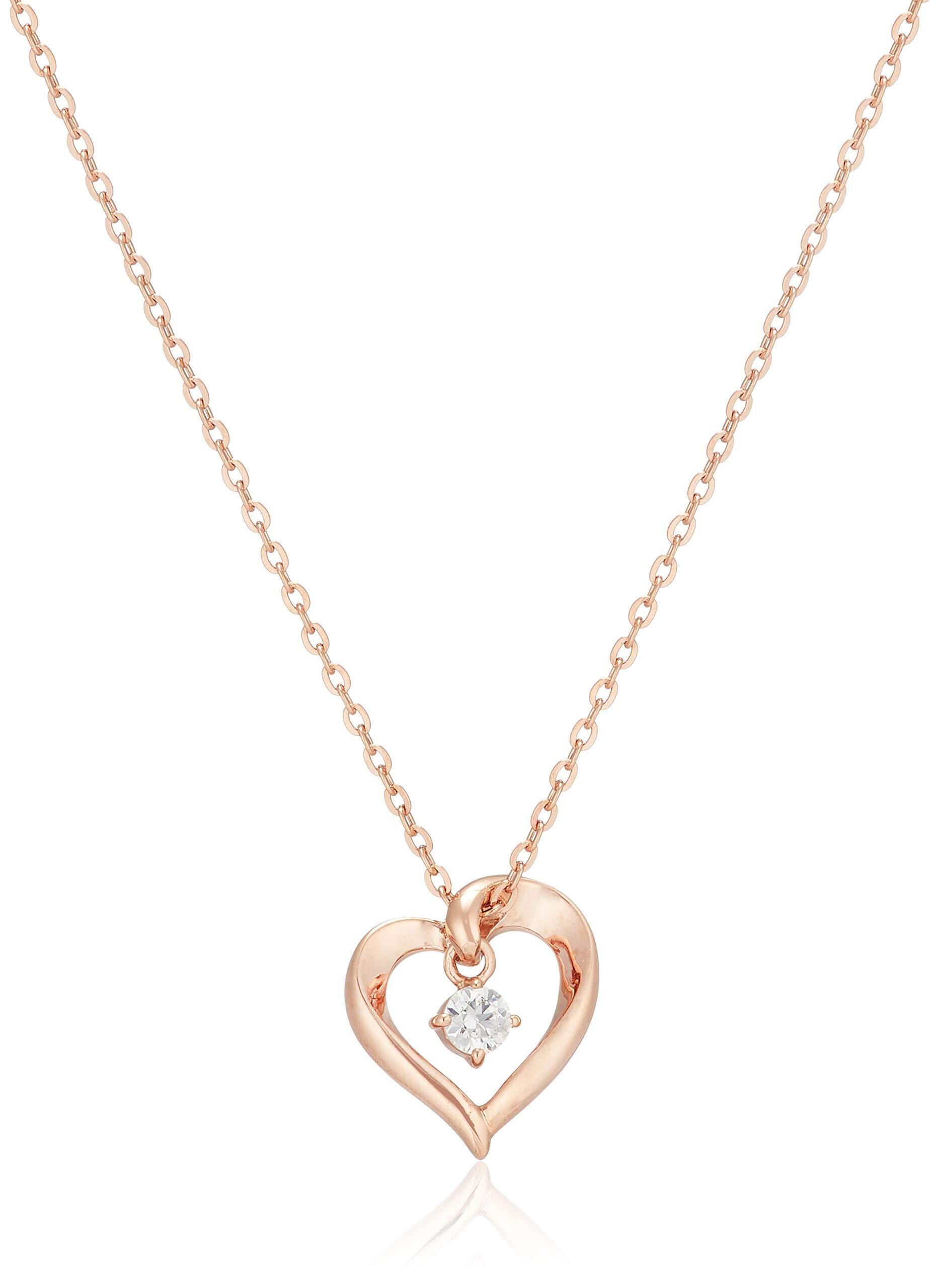 流れるようなラインが魅力的な、愛らしいハートモチーフのネックレス。キュービックジルコニアが揺れながら可憐にきらめきます。ピンクゴールドコーティングの温かみのある輝きも美しい、上品なデザインです。