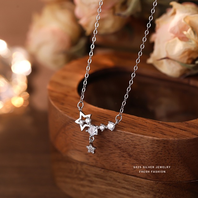 タッセルネックレス レディース デザイン感 ジルコン S925 エネルギー対応純銀 星の流れ