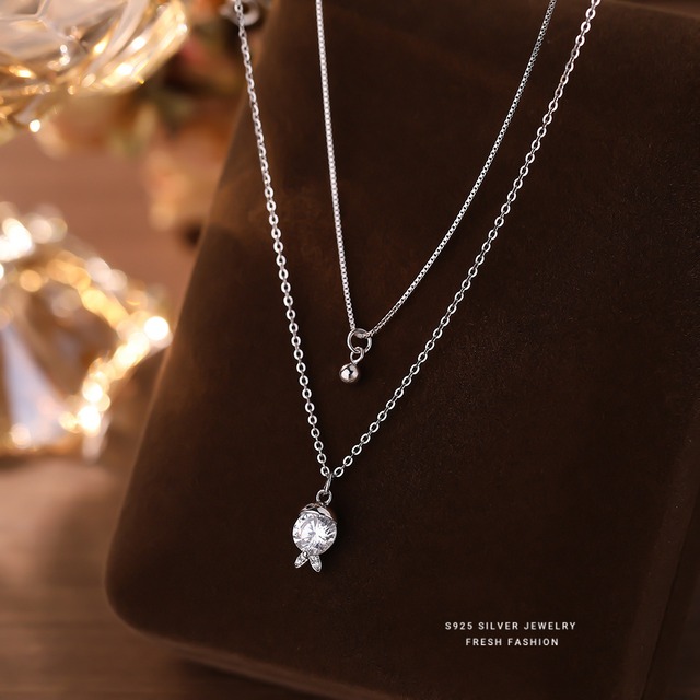 シルバー925キュート韓国風ネックレス二重デザインレディース 個性 重ね付け ァッション カジュアル